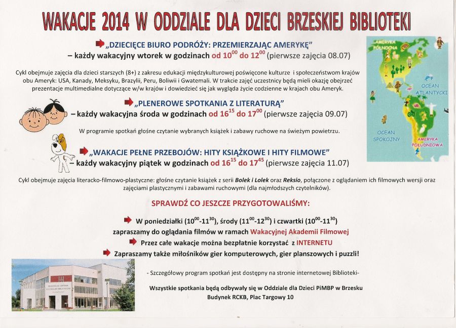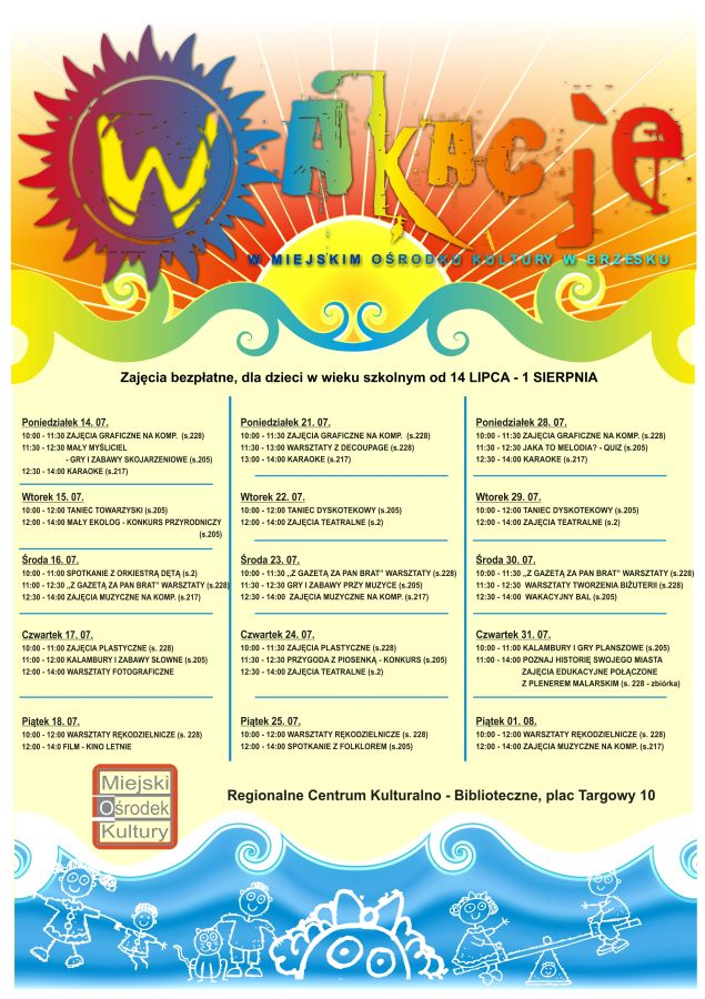 Miejski Ośrodek Kultury i Miejska i Powiatowa Biblioteka Publiczna zapraszają na wakacyjne zajęcia dla dzieci. Szczegóły na plakatach.