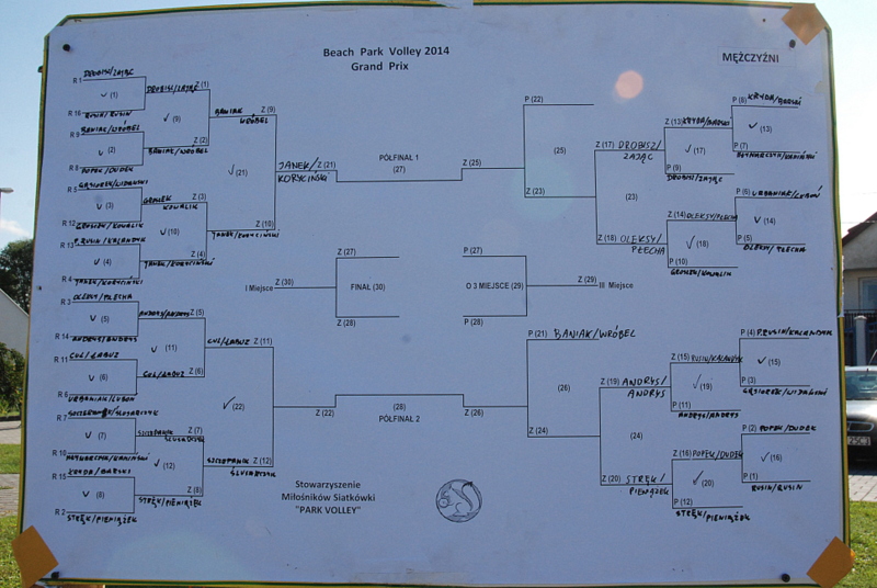 W pierwszym dniu odbywającego się w Brzesku finału Grand Prix w siatkówce plażowej BEACH PARK VOLLEY 2014 w grach eliminacyjnych rozegrano mecze, wyłaniające najlepsze pary w kategorii kobiet i mężczyzn, które będą rywalizowały jutro (niedziela) w rozgrywkach finałowych. Dokończony zostanie także turniej mikstów. Początek zawodów godz. 9.00. Mecze odbywają się na boiskach do siatkówki plażowej obok krytej pływalni BOSiR. Koniec zawodów oraz rozdanie nagród zaplanowane jest na godz. 16.00