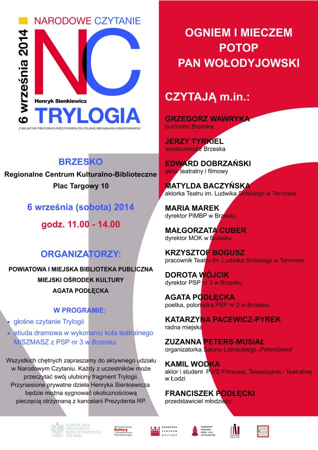 6 września w Regionalnym Centrum Kulturalno-Bibliotecznym odbędzie się czytanie trylogii Henryka Sienkiewicza. Szczegóły na plakacie