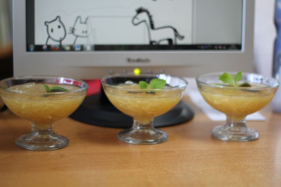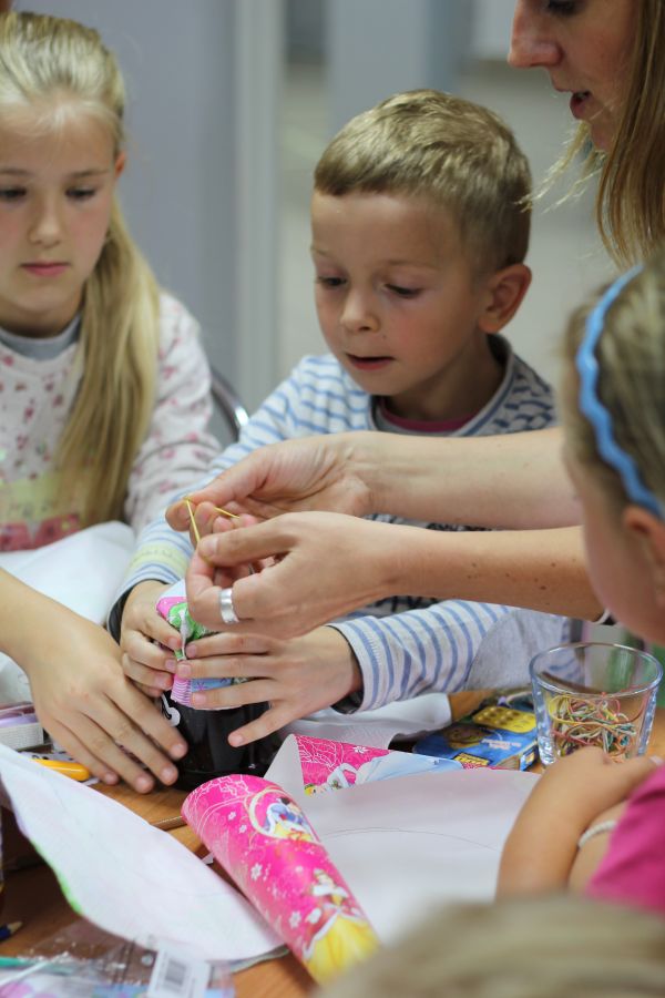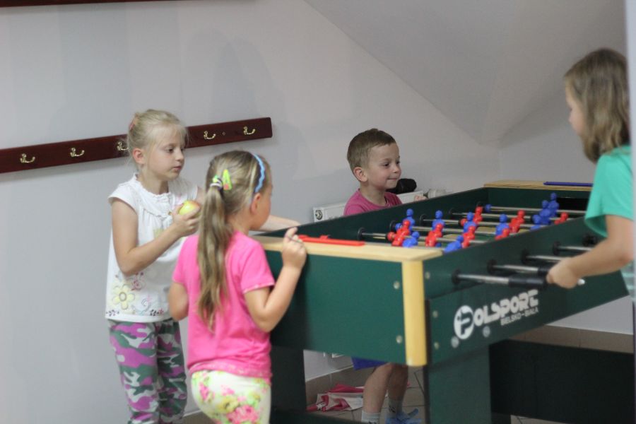 Zaczęło się od fachowych dyskusji na temat zaopatrzenia domowych spiżarni w naturalne i zdrowe pyszności. Każdy szef kuchni wie, że „je się oczami", dlatego kolejnym krokiem było projektowanie etykiet oraz dekorowanie słoiczków. Przed zaplanowaną smaczną niespodzianką uczestnicy spotkania zażyli trochę ruchu, a dorośli przypomnieli sobie dzieciństwo. W ruch poszły stolikowe piłkarzyki, furorę robiła gra w klasy, na placu przed biblioteką powstały rysunkowe historie przygód Pippi Langstrumpf. Kulminacją dnia był poczęstunek wspaniałym, naturalnym kisielem o popularnym ostatnio polskim smaku ... jabłkowym. Po takim spotkaniu jego uczestnikom nie powinno zabraknąć energii do kolejnych wakacji.