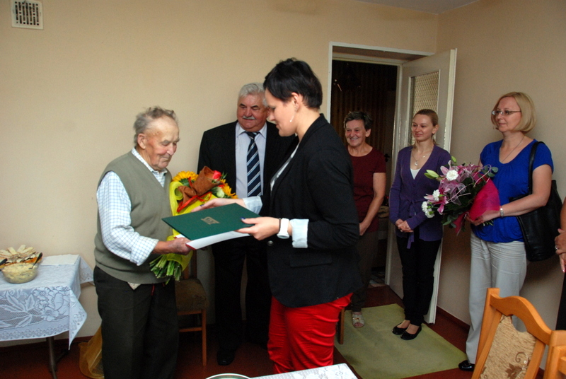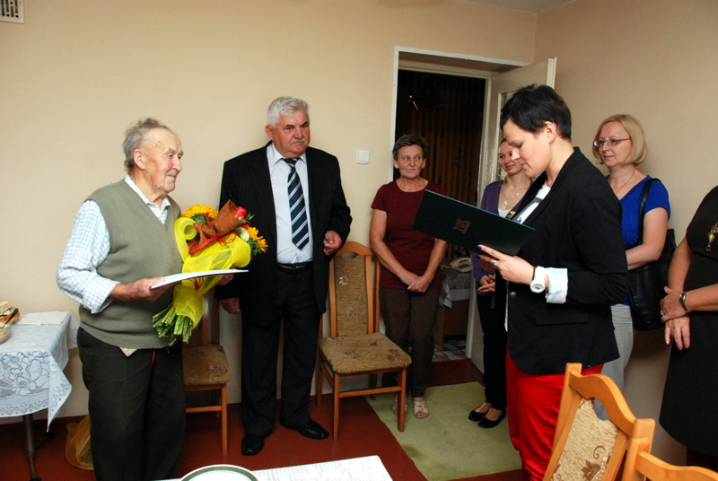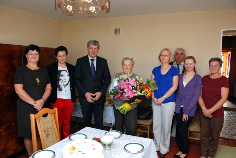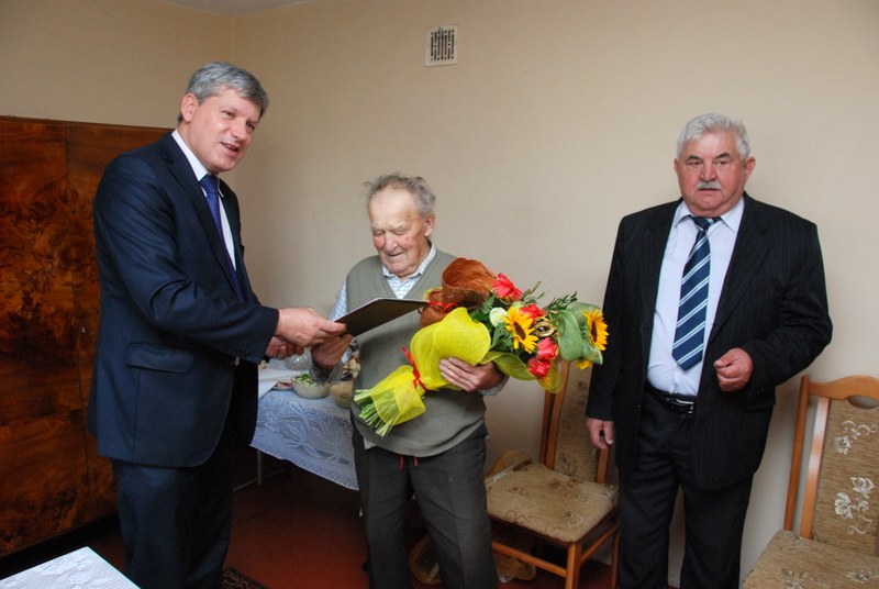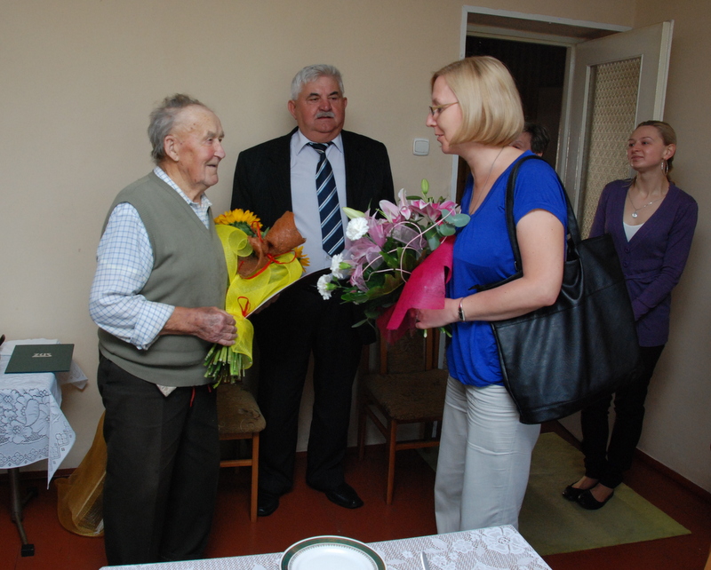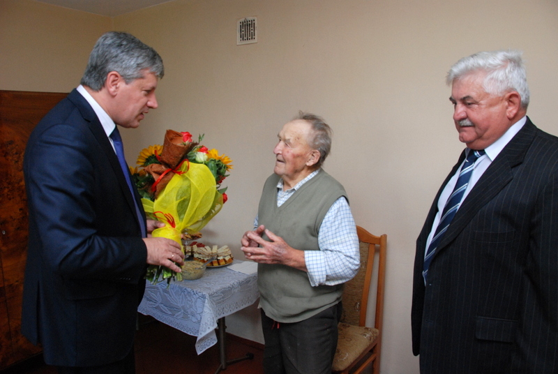 Okolicznościowy dyplom oraz gratulacje od Premiera RP oraz wojewody małopolskiego przekazał Jubilatowi burmistrz Grzegorz Wawryka, życząc kolejnych pięknych lat przeżytych w zdrowiu i spokoju. Nie zabrakło też życzeń od samorządowców, które przekazał przewodniczący Rady Miejskiej Tadeusz Pasierb. Jubilat dostał także życzenia i kwiaty od pracowników brzeskiego Urzędu Stanu Cywilnego oraz przedstawicieli ZUS.