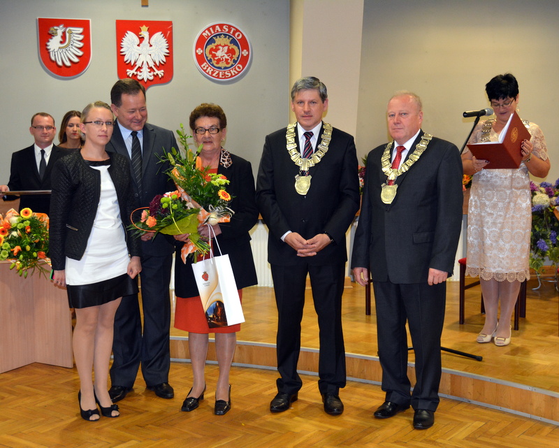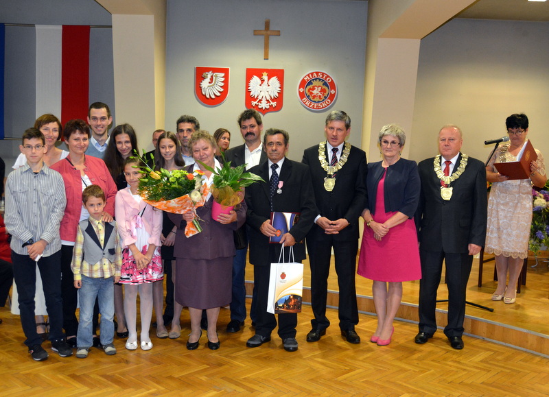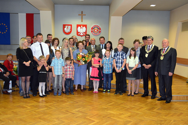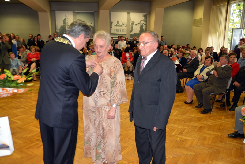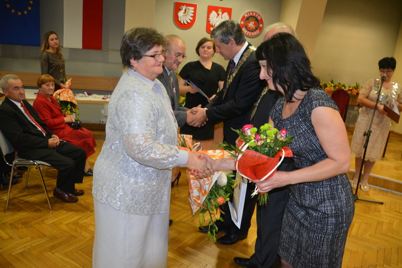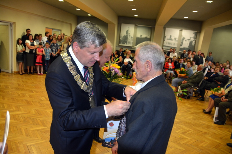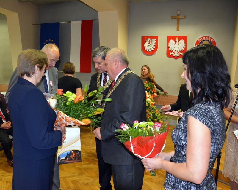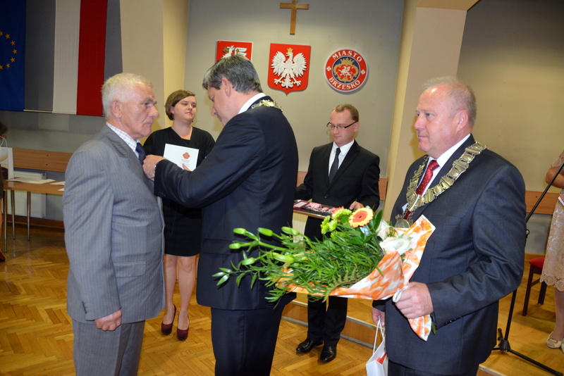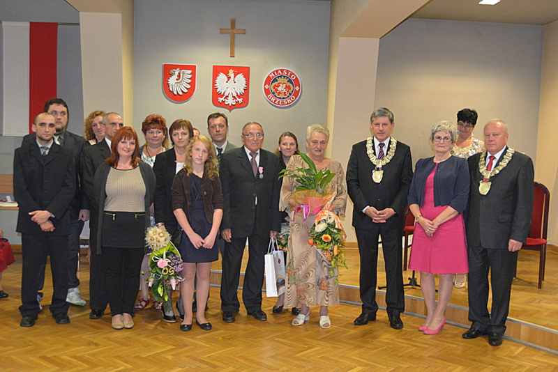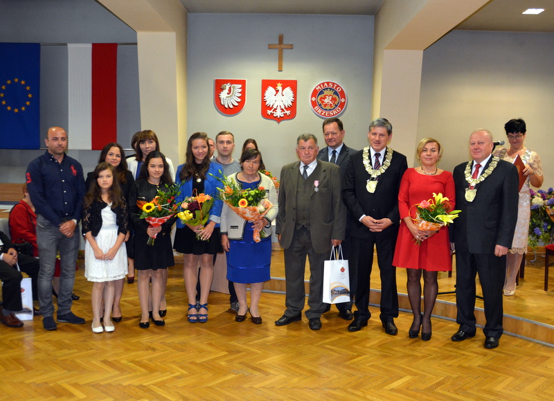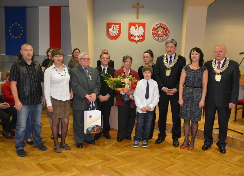 Wyjątkowa atmosfera towarzyszyła spotkaniu w Urzędzie Miejskim - 23 pary małżeńskie świętowały jubileusz 50-lecia.Wyjątkowych gości oraz ich najbliższych podejmował burmistrz Grzegorz Wawryka, mając zaszczyt wręczenia im w imieniu Prezydenta RP medali oraz listów gratulacyjnych za długoletnie pożycie małżeńskie. Aktu dekoracji dokonał wspólnie z przewodniczącym Rady Miejskiej Tadeuszem Pasierbem.Wasza obecność tutaj świadczy o tym, że wypełniliście przysięgę małżeńską, w której zobowiązaliście się iść razem przez życie i nieść sobie pomoc w dobrej, czy złej godzinie. Wraz z wami ten zaszczytny jubileusz świętują dzisiaj wasi bliscy: dzieci wnuki, prawnuki, najbliższa rodzina, oraz znajomi – ich wszystkich serdecznie witamy. Tymi słowami przywitała wszystkich kierowniczka Urzędu Stanu Cywilnego, Aleksandra Fijałkowska.Dostojni jubilaci, pozwólcie, że z tej niezwykłej okazji wspaniałego jubileuszu waszego pożycia małżeńskiego, złożę wam najserdeczniejsze gratulacje za chlubne przebycie tak pięknej i długiej wspólnej drogi życia oraz za ogrom pracy i serdecznych uczuć włożonych w dobre wychowanie dzieci. Za ofiarną miłość, przykład życia, cierpienia i łez radości, noce nieprzespane, słowa otuchy. Myślę, że jest to dla was wielki dzień radości – mówił burmistrz Brzeska.Do życzeń dołączyli się przewodniczący osiedli i sołtysi sołectw, w których mieszkają jubilaci – Katarzyna Pacewicz Pyrek, Maria Kądziołka, Anna Lubowiecka, Marek Kośmider i Józef Witek.W tym roku złote gody obchodzi 70 par małżeńskich. Jest toszczególny moment, który przeżywamy i mamy okazję cieszyć się ze wspaniałego jubileuszu, dorobku życia wielu brzeszczan, którzy na przestrzeni tych 50 lat, tworzyli rodzinę, budowali Brzesko i jego przyszłość.Cała uroczystość oprawiona była występem w wykonaniu uczniów Szkoły Muzycznej, młodzieży Miejskiego Ośrodka Kultury oraz występem zespołu Krakowiaków Ziemi Brzeskiej.BP/fot. Marek Kotfis