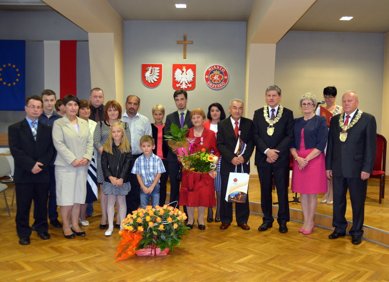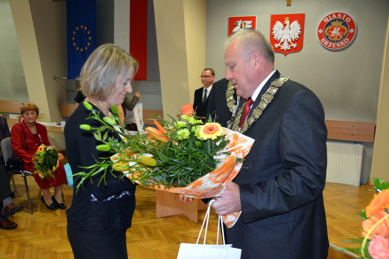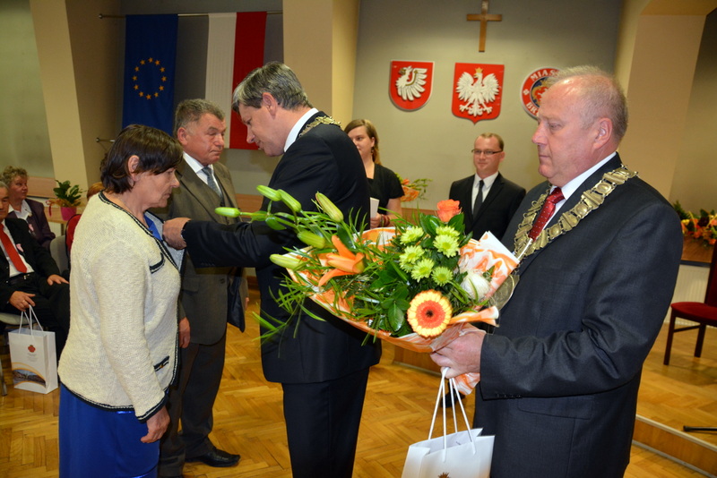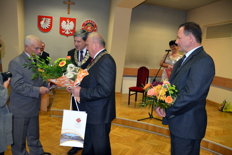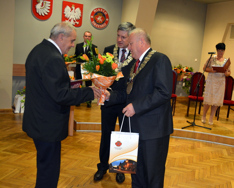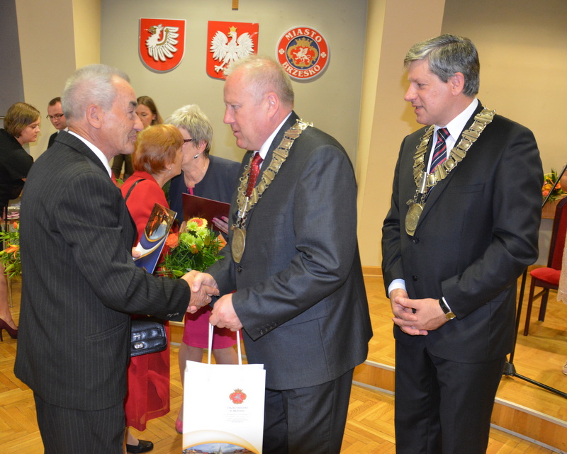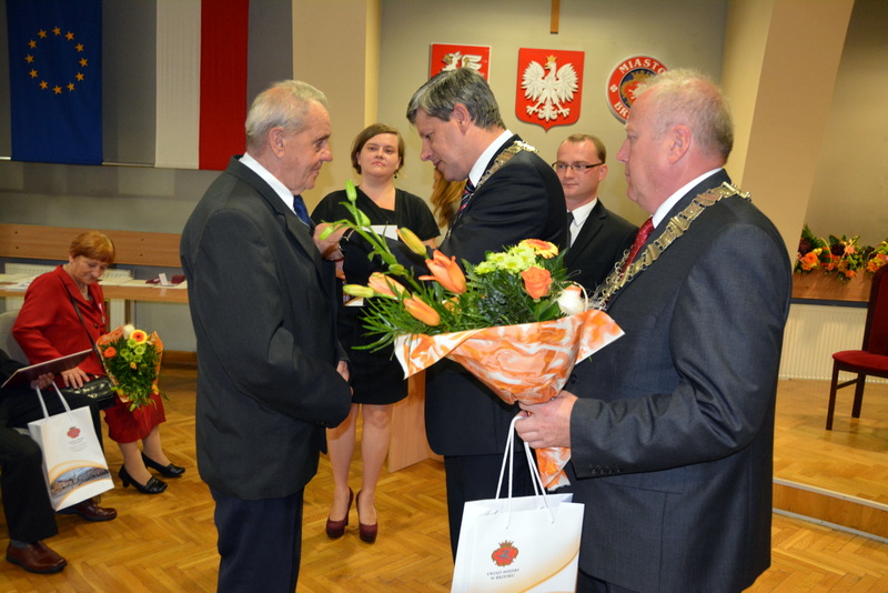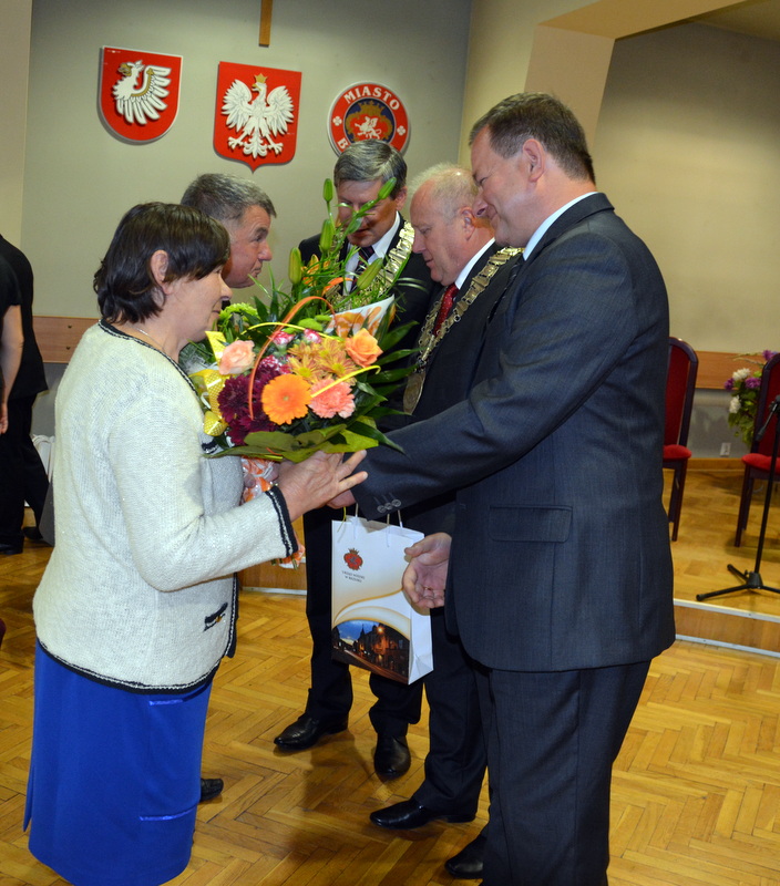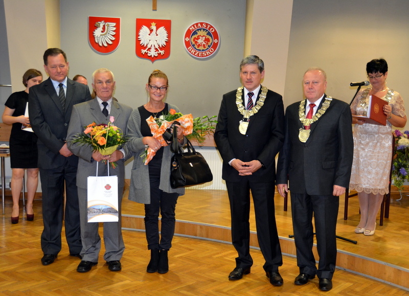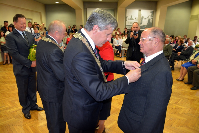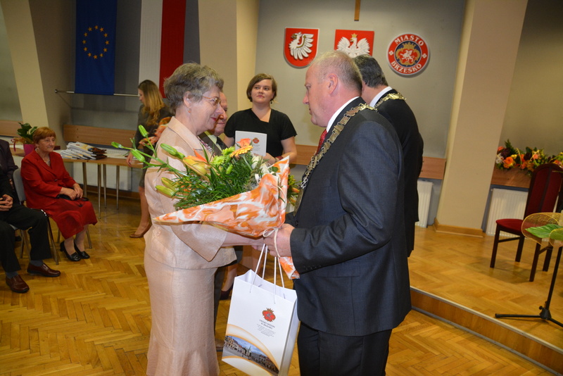 Wyjątkowa atmosfera towarzyszyła spotkaniu w Urzędzie Miejskim - 23 pary małżeńskie świętowały jubileusz 50-lecia.Wyjątkowych gości oraz ich najbliższych podejmował burmistrz Grzegorz Wawryka, mając zaszczyt wręczenia im w imieniu Prezydenta RP medali oraz listów gratulacyjnych za długoletnie pożycie małżeńskie. Aktu dekoracji dokonał wspólnie z przewodniczącym Rady Miejskiej Tadeuszem Pasierbem.Wasza obecność tutaj świadczy o tym, że wypełniliście przysięgę małżeńską, w której zobowiązaliście się iść razem przez życie i nieść sobie pomoc w dobrej, czy złej godzinie. Wraz z wami ten zaszczytny jubileusz świętują dzisiaj wasi bliscy: dzieci wnuki, prawnuki, najbliższa rodzina, oraz znajomi – ich wszystkich serdecznie witamy. Tymi słowami przywitała wszystkich kierowniczka Urzędu Stanu Cywilnego, Aleksandra Fijałkowska.Dostojni jubilaci, pozwólcie, że z tej niezwykłej okazji wspaniałego jubileuszu waszego pożycia małżeńskiego, złożę wam najserdeczniejsze gratulacje za chlubne przebycie tak pięknej i długiej wspólnej drogi życia oraz za ogrom pracy i serdecznych uczuć włożonych w dobre wychowanie dzieci. Za ofiarną miłość, przykład życia, cierpienia i łez radości, noce nieprzespane, słowa otuchy. Myślę, że jest to dla was wielki dzień radości – mówił burmistrz Brzeska.Do życzeń dołączyli się przewodniczący osiedli i sołtysi sołectw, w których mieszkają jubilaci – Katarzyna Pacewicz Pyrek, Maria Kądziołka, Anna Lubowiecka, Marek Kośmider i Józef Witek.W tym roku złote gody obchodzi 70 par małżeńskich. Jest toszczególny moment, który przeżywamy i mamy okazję cieszyć się ze wspaniałego jubileuszu, dorobku życia wielu brzeszczan, którzy na przestrzeni tych 50 lat, tworzyli rodzinę, budowali Brzesko i jego przyszłość.Cała uroczystość oprawiona była występem w wykonaniu uczniów Szkoły Muzycznej, młodzieży Miejskiego Ośrodka Kultury oraz występem zespołu Krakowiaków Ziemi Brzeskiej.BP/fot. Marek Kotfis