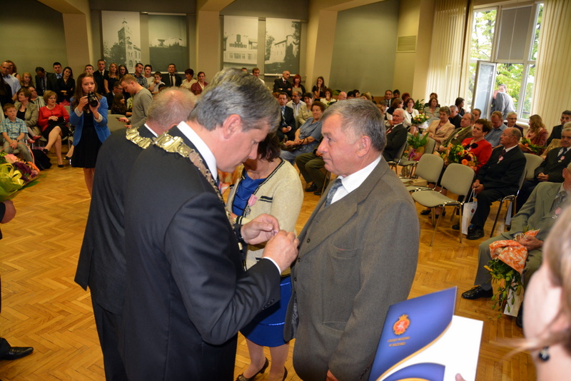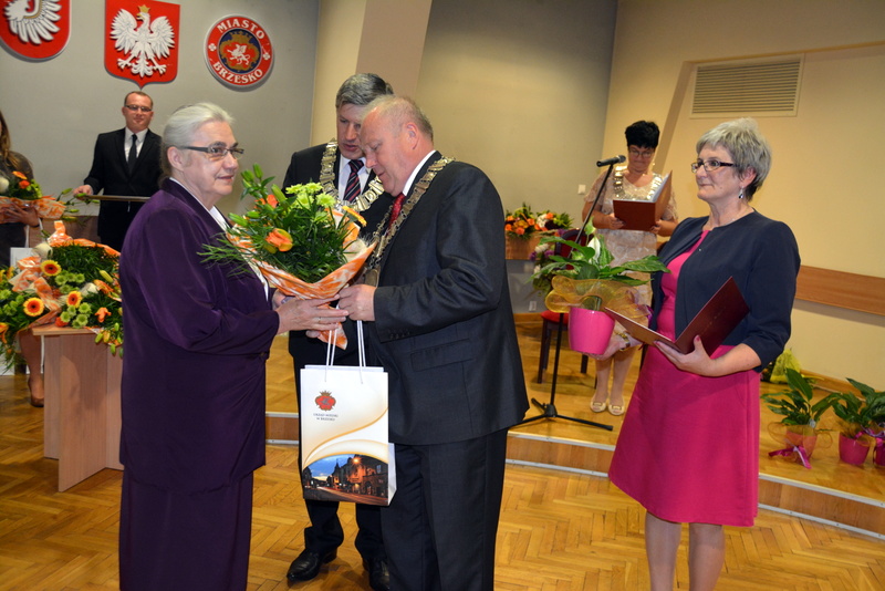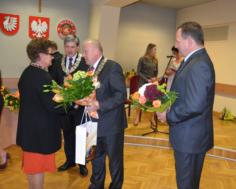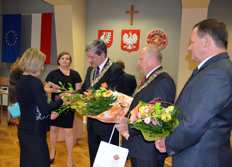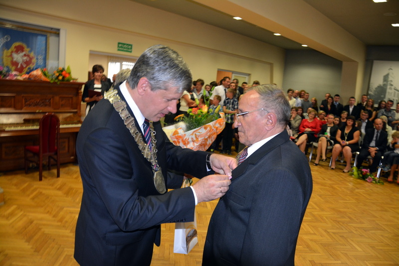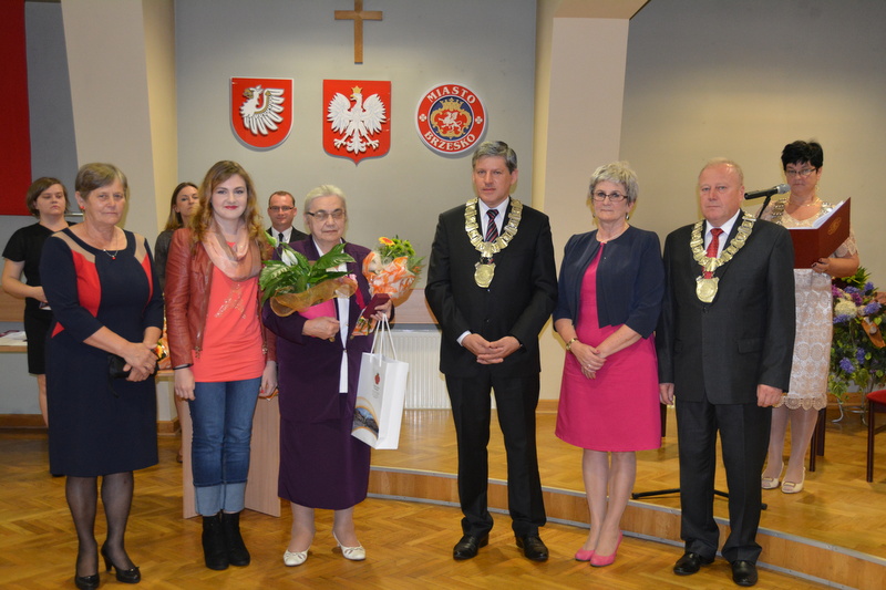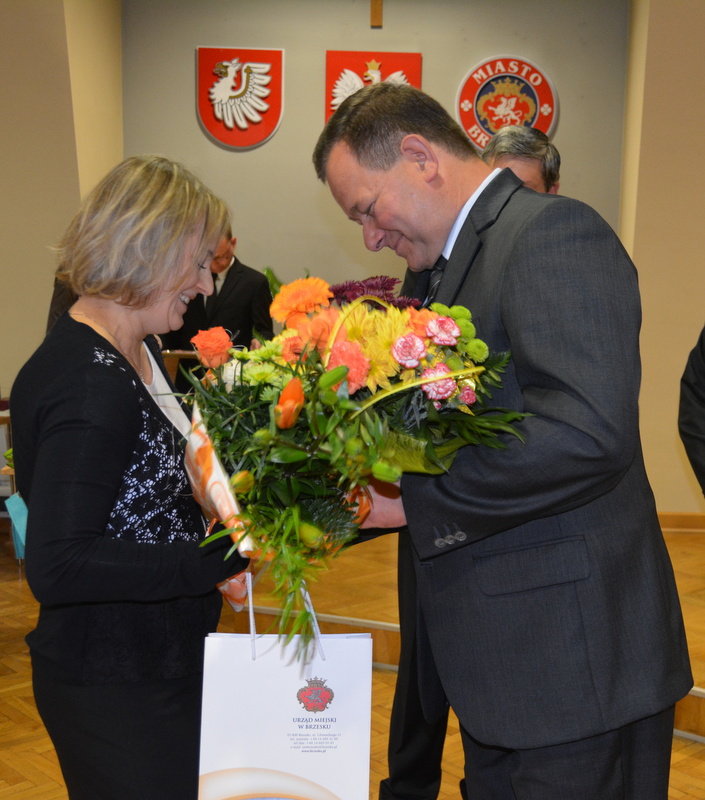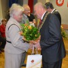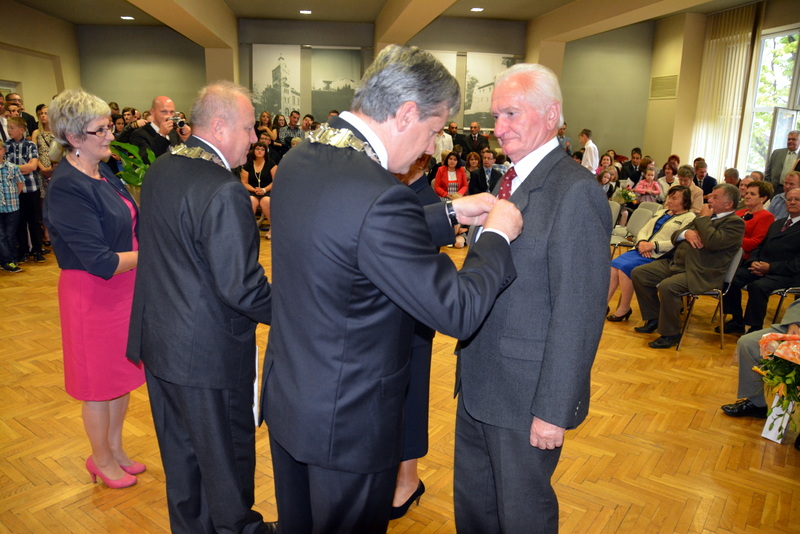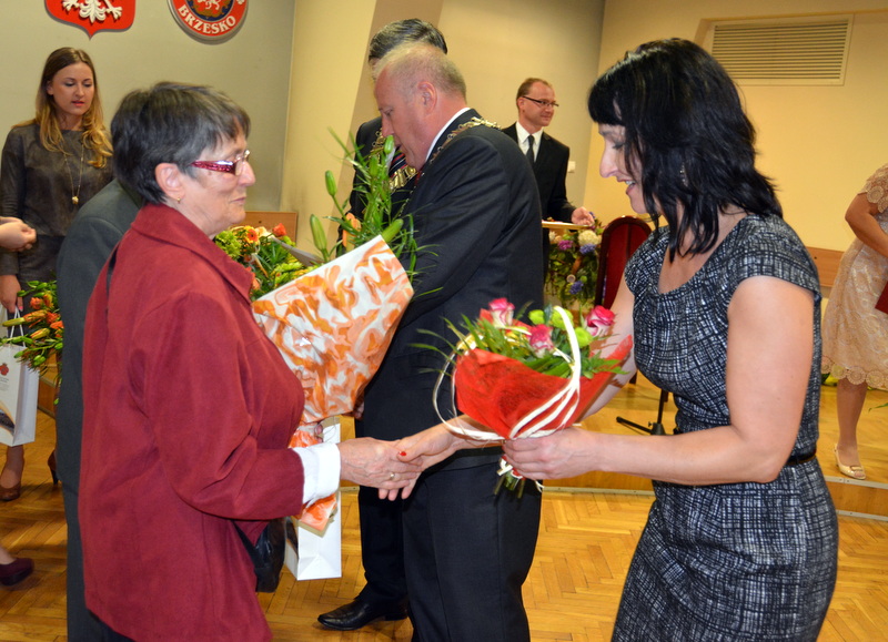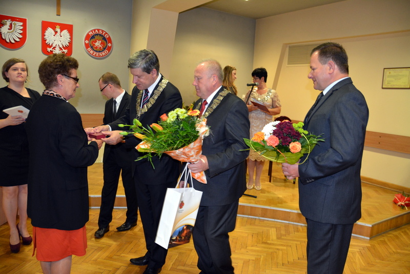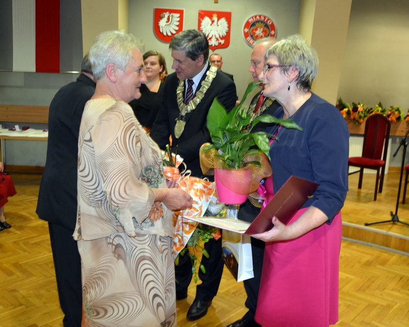 Wyjątkowa atmosfera towarzyszyła spotkaniu w Urzędzie Miejskim - 23 pary małżeńskie świętowały jubileusz 50-lecia.Wyjątkowych gości oraz ich najbliższych podejmował burmistrz Grzegorz Wawryka, mając zaszczyt wręczenia im w imieniu Prezydenta RP medali oraz listów gratulacyjnych za długoletnie pożycie małżeńskie. Aktu dekoracji dokonał wspólnie z przewodniczącym Rady Miejskiej Tadeuszem Pasierbem.Wasza obecność tutaj świadczy o tym, że wypełniliście przysięgę małżeńską, w której zobowiązaliście się iść razem przez życie i nieść sobie pomoc w dobrej, czy złej godzinie. Wraz z wami ten zaszczytny jubileusz świętują dzisiaj wasi bliscy: dzieci wnuki, prawnuki, najbliższa rodzina, oraz znajomi – ich wszystkich serdecznie witamy. Tymi słowami przywitała wszystkich kierowniczka Urzędu Stanu Cywilnego, Aleksandra Fijałkowska.Dostojni jubilaci, pozwólcie, że z tej niezwykłej okazji wspaniałego jubileuszu waszego pożycia małżeńskiego, złożę wam najserdeczniejsze gratulacje za chlubne przebycie tak pięknej i długiej wspólnej drogi życia oraz za ogrom pracy i serdecznych uczuć włożonych w dobre wychowanie dzieci. Za ofiarną miłość, przykład życia, cierpienia i łez radości, noce nieprzespane, słowa otuchy. Myślę, że jest to dla was wielki dzień radości – mówił burmistrz Brzeska.Do życzeń dołączyli się przewodniczący osiedli i sołtysi sołectw, w których mieszkają jubilaci – Katarzyna Pacewicz Pyrek, Maria Kądziołka, Anna Lubowiecka, Marek Kośmider i Józef Witek.W tym roku złote gody obchodzi 70 par małżeńskich. Jest toszczególny moment, który przeżywamy i mamy okazję cieszyć się ze wspaniałego jubileuszu, dorobku życia wielu brzeszczan, którzy na przestrzeni tych 50 lat, tworzyli rodzinę, budowali Brzesko i jego przyszłość.Cała uroczystość oprawiona była występem w wykonaniu uczniów Szkoły Muzycznej, młodzieży Miejskiego Ośrodka Kultury oraz występem zespołu Krakowiaków Ziemi Brzeskiej.BP/fot. Marek Kotfis