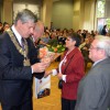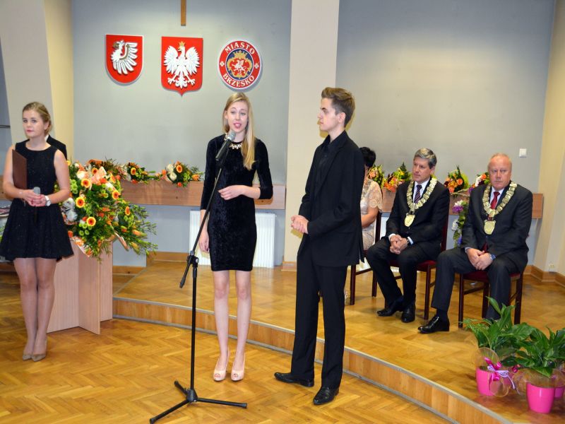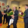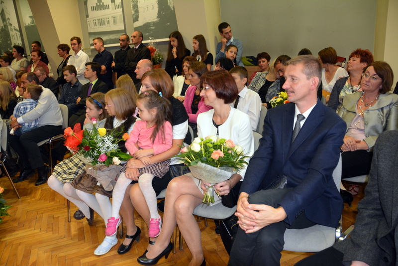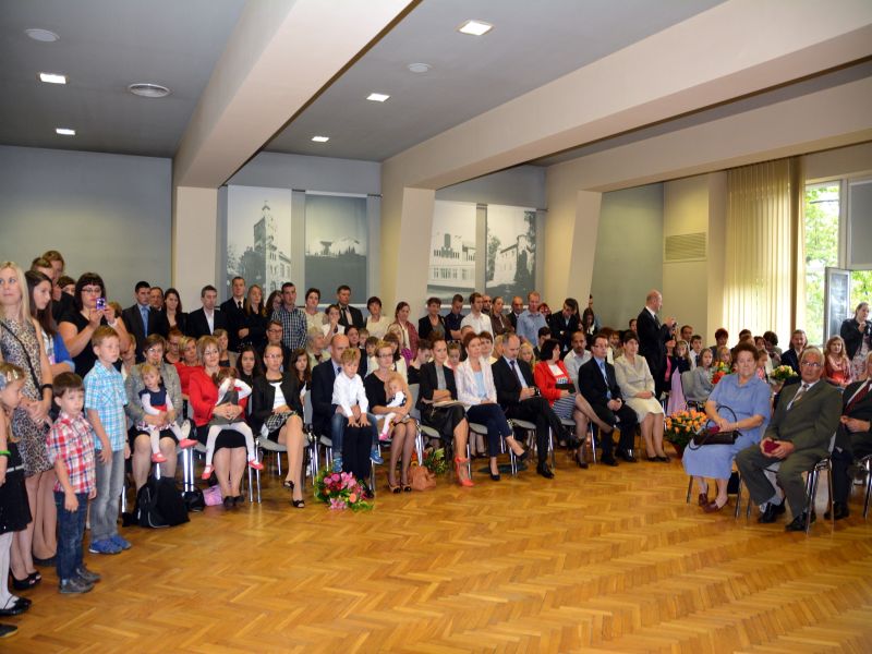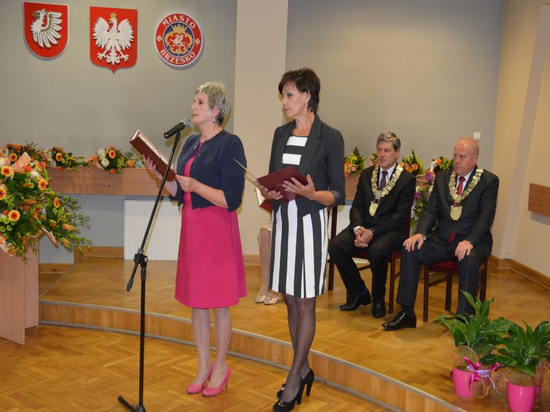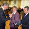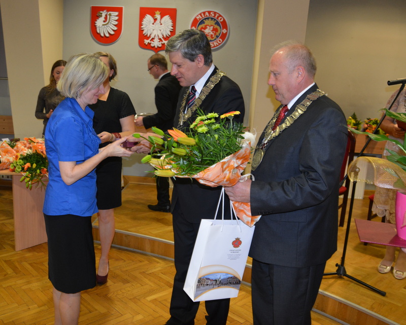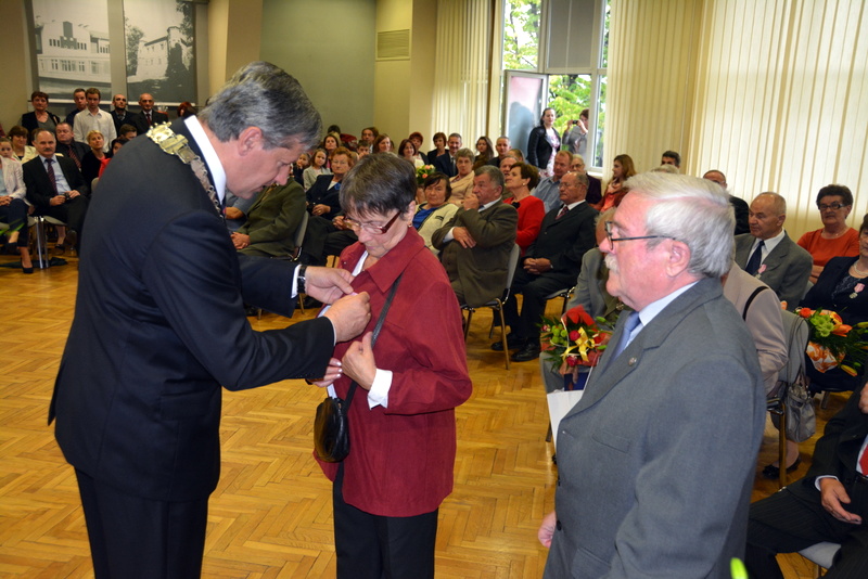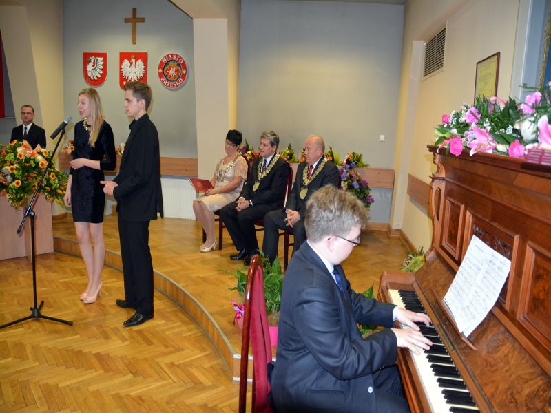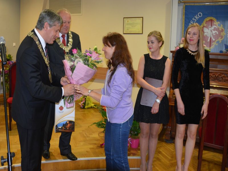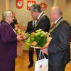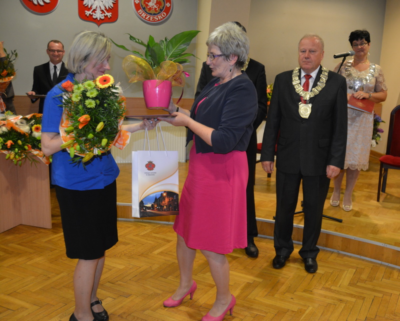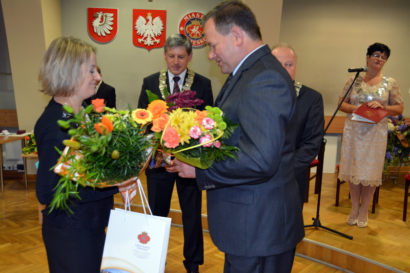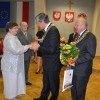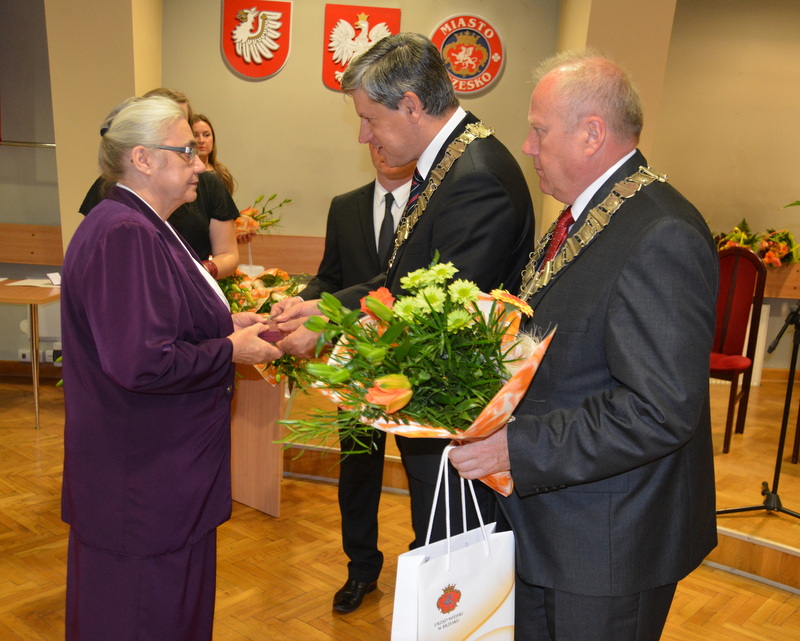 Wyjątkowa atmosfera towarzyszyła spotkaniu w Urzędzie Miejskim - 23 pary małżeńskie świętowały jubileusz 50-lecia.Wyjątkowych gości oraz ich najbliższych podejmował burmistrz Grzegorz Wawryka, mając zaszczyt wręczenia im w imieniu Prezydenta RP medali oraz listów gratulacyjnych za długoletnie pożycie małżeńskie. Aktu dekoracji dokonał wspólnie z przewodniczącym Rady Miejskiej Tadeuszem Pasierbem.Wasza obecność tutaj świadczy o tym, że wypełniliście przysięgę małżeńską, w której zobowiązaliście się iść razem przez życie i nieść sobie pomoc w dobrej, czy złej godzinie. Wraz z wami ten zaszczytny jubileusz świętują dzisiaj wasi bliscy: dzieci wnuki, prawnuki, najbliższa rodzina, oraz znajomi – ich wszystkich serdecznie witamy. Tymi słowami przywitała wszystkich kierowniczka Urzędu Stanu Cywilnego, Aleksandra Fijałkowska.Dostojni jubilaci, pozwólcie, że z tej niezwykłej okazji wspaniałego jubileuszu waszego pożycia małżeńskiego, złożę wam najserdeczniejsze gratulacje za chlubne przebycie tak pięknej i długiej wspólnej drogi życia oraz za ogrom pracy i serdecznych uczuć włożonych w dobre wychowanie dzieci. Za ofiarną miłość, przykład życia, cierpienia i łez radości, noce nieprzespane, słowa otuchy. Myślę, że jest to dla was wielki dzień radości – mówił burmistrz Brzeska.Do życzeń dołączyli się przewodniczący osiedli i sołtysi sołectw, w których mieszkają jubilaci – Katarzyna Pacewicz Pyrek, Maria Kądziołka, Anna Lubowiecka, Marek Kośmider i Józef Witek.W tym roku złote gody obchodzi 70 par małżeńskich. Jest toszczególny moment, który przeżywamy i mamy okazję cieszyć się ze wspaniałego jubileuszu, dorobku życia wielu brzeszczan, którzy na przestrzeni tych 50 lat, tworzyli rodzinę, budowali Brzesko i jego przyszłość.Cała uroczystość oprawiona była występem w wykonaniu uczniów Szkoły Muzycznej, młodzieży Miejskiego Ośrodka Kultury oraz występem zespołu Krakowiaków Ziemi Brzeskiej.BP/fot. Marek Kotfis