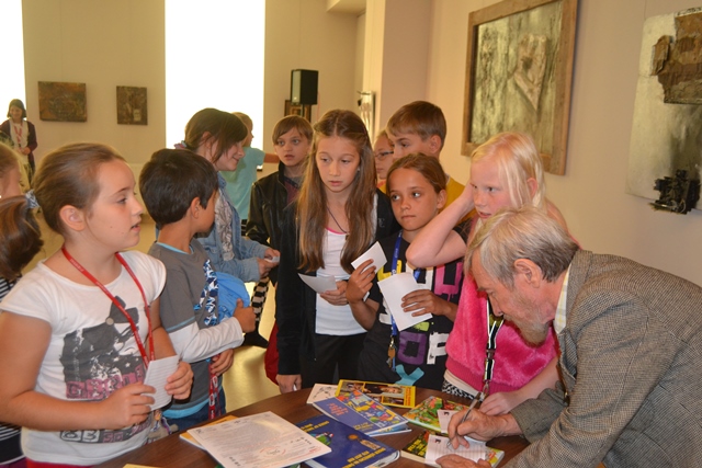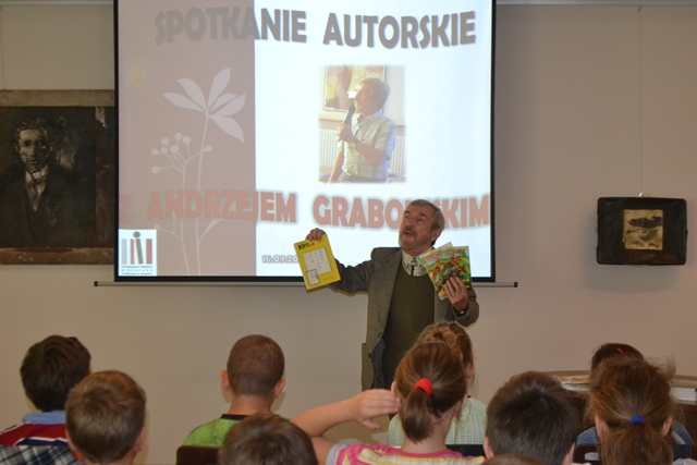 Autor „Przygód Skrzata Wiercipiętka” i Kawaler Orderu Uśmiechu wspominał lata swojej młodości, czasy harcerskich obozów, kiedy jeszcze nie znano tabletów i komputerów, a młodzież uwielbiała spędzać czas na łonie natury. Ponadto pisarz zaprezentował swoją bogatą twórczość, przeczytał zabawny fragment jednej z ostatnio wydanych powieści - „Bractwa rycerzy” i z cierpliwością odpowiadał na wiele pytań uczniów. Na zakończenie spotkania był czas na autografy i wspólne zdjęcia.