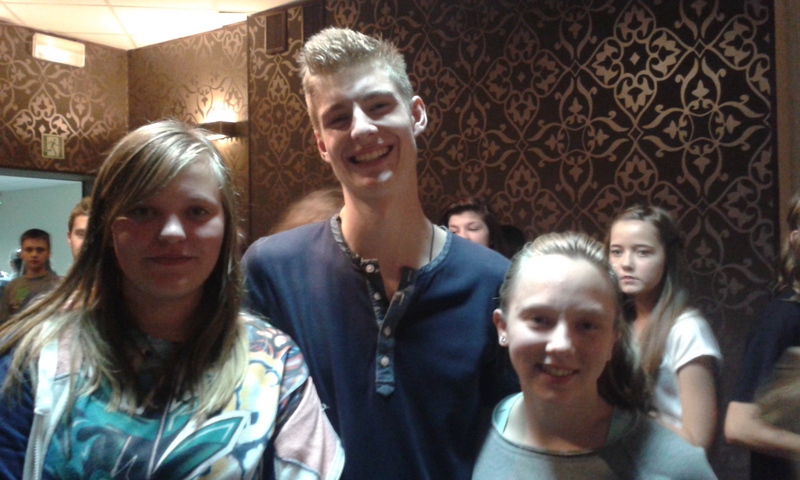 Uczniowie Publicznego Gimnazjum im. Jana Pawła II w Jadownikach wraz z uczniami Publicznego Gimnazjum im. Kardynała Stefana Wyszyńskiego w Woli Dębińskiej