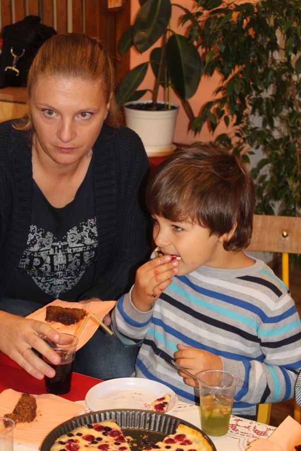 Rodzice pięknie się zrewanżowali przygotowali zdrowe przekąski. Dzieci z apetytem kosztowały: surówki z warzyw i owoców, galaretki owocowe, kanapki pełne witamin, pyszne ciasto marchewkowe i tartę z malinami. Na stołach znalazły się też szaszłyki z owocami oraz soki z jabłek i gruszek.