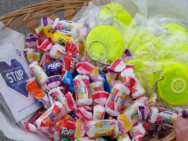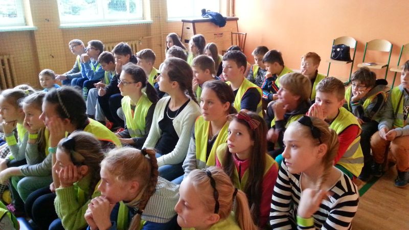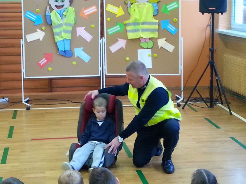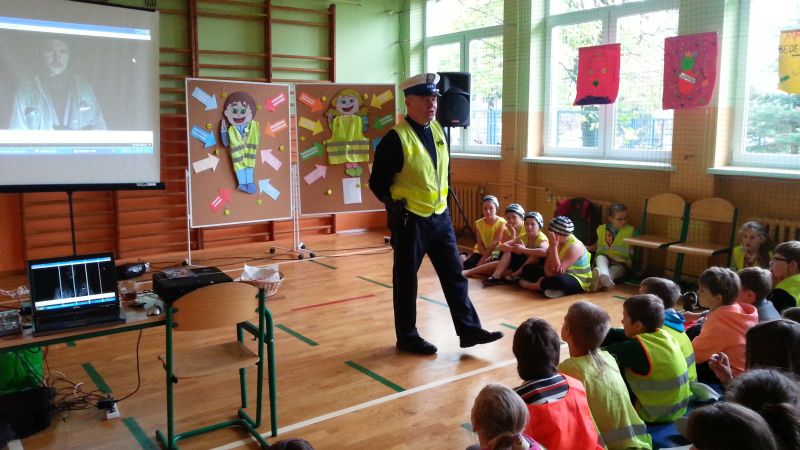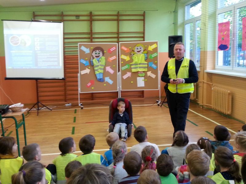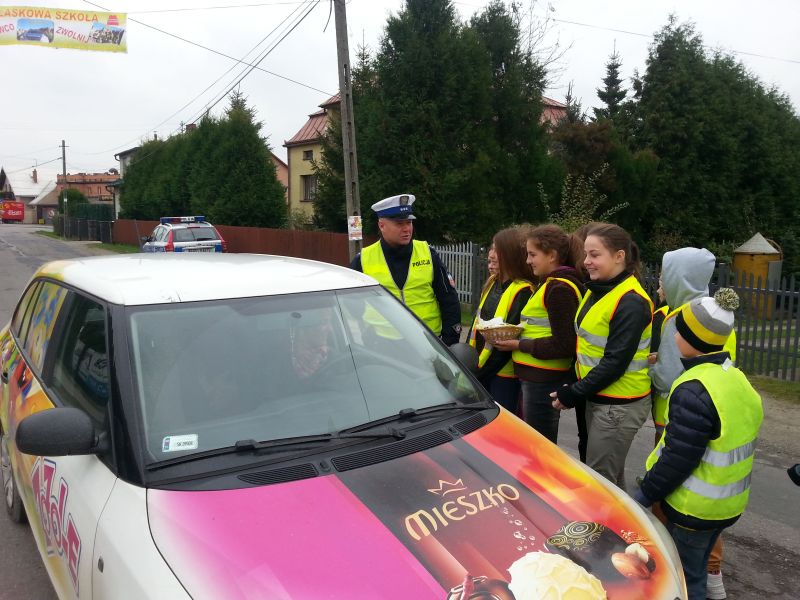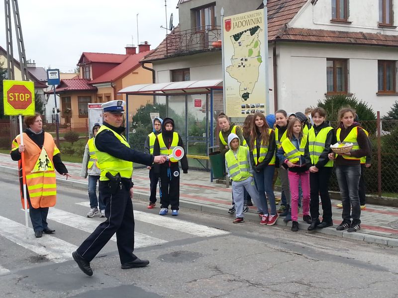 Pod takim hasłem prowadzono działania w miesiącu październiku w Publicznej Szkole Podstawowej nr 2 w Jadownikach w związku z udziałem placówki w małopolskim konkursie „Odblaskowa Szkoła”.Koordynatorzy: Rafał Sieński oraz Jan Chrabąszcz przeprowadzili eliminacje szkolne do Powiatowego Turnieju wiedzy na temat Bezpieczeństwa Ruchu Drogowego. Uczniowie musieli wykazać się wiedzą teoretyczną jak również praktycznymi umiejętnościami jazdy na rowerze.Przeprowadzono również konkurs plastyczny na w/w temat.W dniu 24 października do szkoły przybył starszy aspirant Robert Gładysz z Komendy Powiatowej Policji w Brzesku (Wydział Ruchu Drogowego), który przeprowadził prelekcję dla dzieci klas 1-3 oraz 4-6. W przygotowanej inscenizacji policjant uświadomił dzieciom jak ważne jest stosowanie pasów bezpieczeństwa oraz fotelików i podkładek.Kolejnym działaniem poprawy bezpieczeństwa było wyjście na skrzyżowanie w okolicy szkoły, gdzie dzieci policjant zatrzymywał kierowców przejeżdżających samochodów w celu oceny poprawności jazdy. Kierowców, którzy wykazywali się kulturą jazdy oraz stosowali się do przepisów ruchu drogowego dzieci nagradzały słodyczami z elementami odblaskowymi. Natomiast kierujący, których zachowanie było niewłaściwe otrzymywali kwaśny owoc wraz z ulotką „stop wariatom drogowym”.Cała społeczność szkolna obejrzała serię filmów instruktażowych promujących bezpieczne zachowanie na drodze.