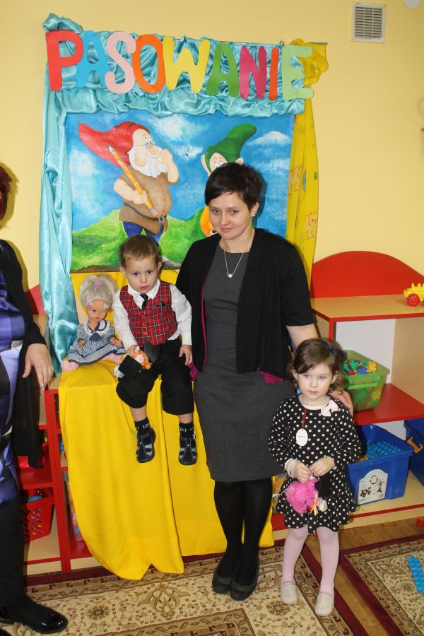 Na koniec występu złożyły przyrzeczenie bycia „Super przedszkolakiem”. Po tej obietnicy dyrektor Elżbieta Krzyżak pasowała każde dziecko na przedszkolaka okazałym ołówkiem. Na pamiątkę z uroczystości dzieci otrzymały kolorowe pieski „muflony”.