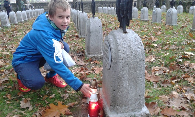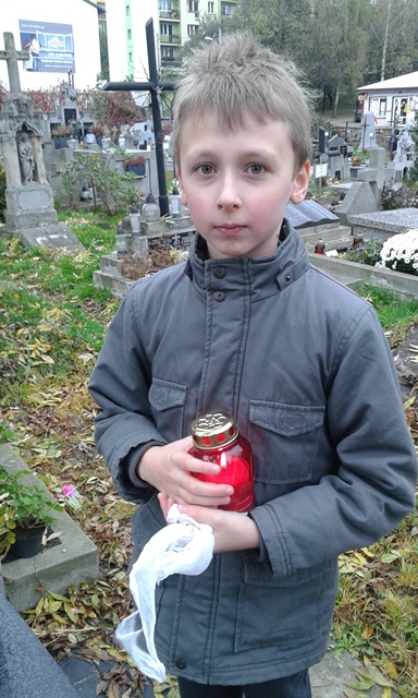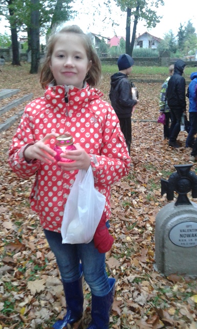 Następnie wszyscy udali się na brzeski cmentarz parafialny. Tam uczniowie obejrzeli zabytkowe nagrobki i zapalili znicze na samotnych, opuszczonych grobach, aby choć w tym czasie miejsce spoczynku zapomniane przez wszystkich, stało się żywym pomnikiem pamięci o zmarłych. W ten sposób młodzież zaopiekowała się kilkoma grobami, o które być może nie ma już kto dzisiaj zadbać. (Magdalena Głowacka - Zastawnik)