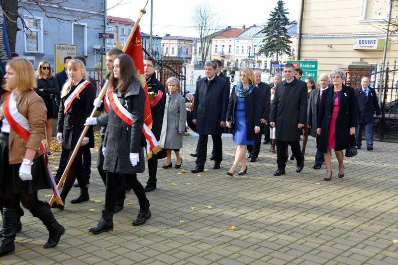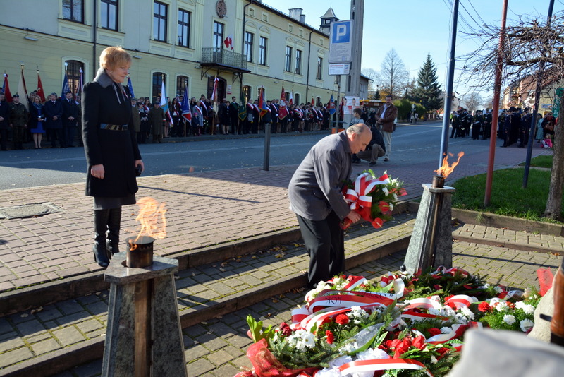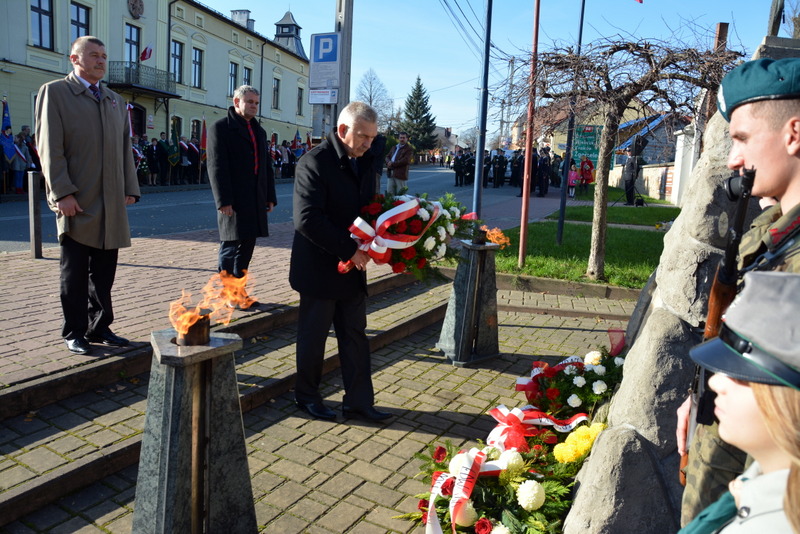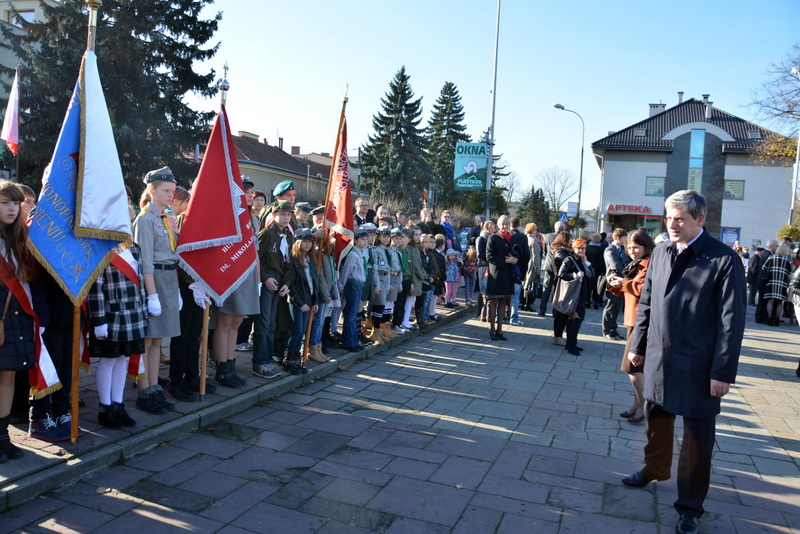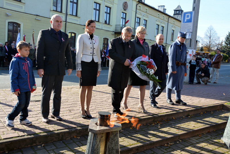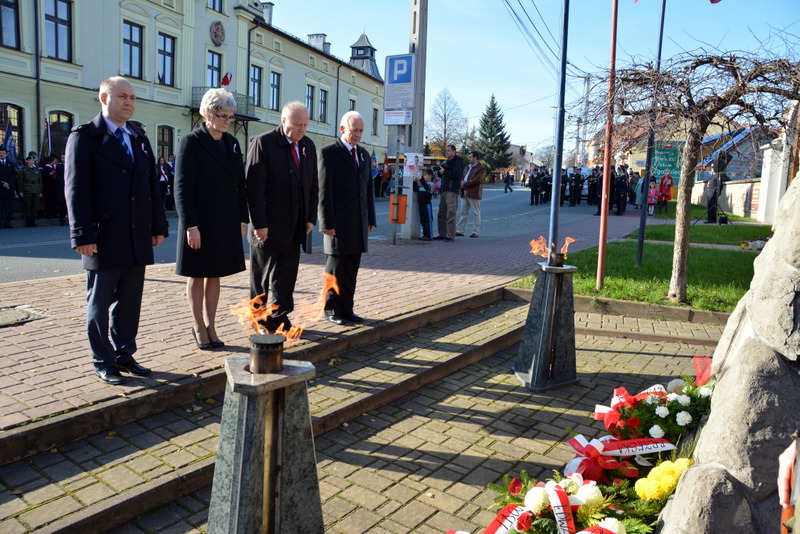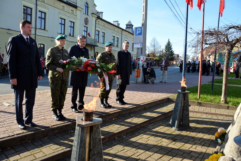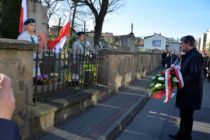 W imieniu mieszkańców gminy biało czerwoną wiązankę złożył burmistrz Grzegorz Wawryka, wraz z przybyłymi z Lwowa przedstawicielami "Strzelca". W imieniu Rady Miejskiej kwiaty złożył przewodniczący Tadeusz Pasierb oraz radni. Wiązanki złożyli również poseł Edward Czesak, starosta Andrzej Potępa, przedstawiciele partii politycznych, stowarzyszeń, instytucji, zakładów pracy, młodzież wszystkich szkół z terenu gminy, harcerze, oraz najmłodsi mieszkańcy, czyli przedszkolaki z Publicznego Przedszkola nr 4 w Brzesku.