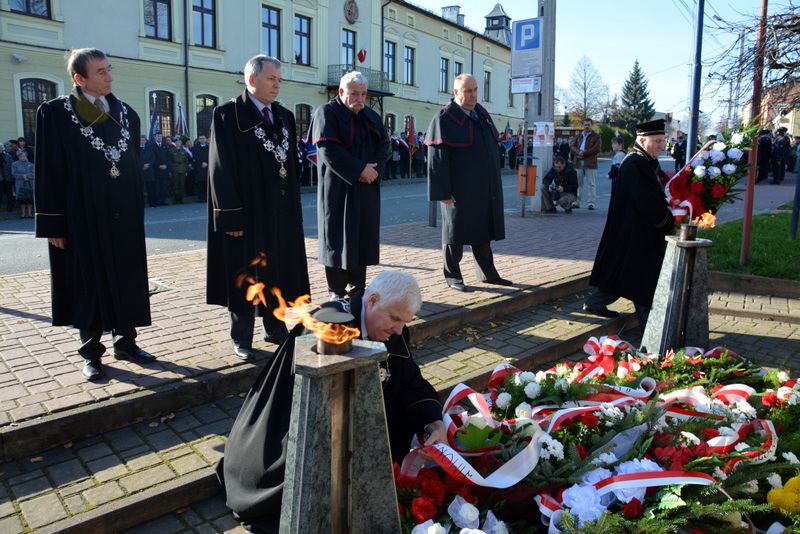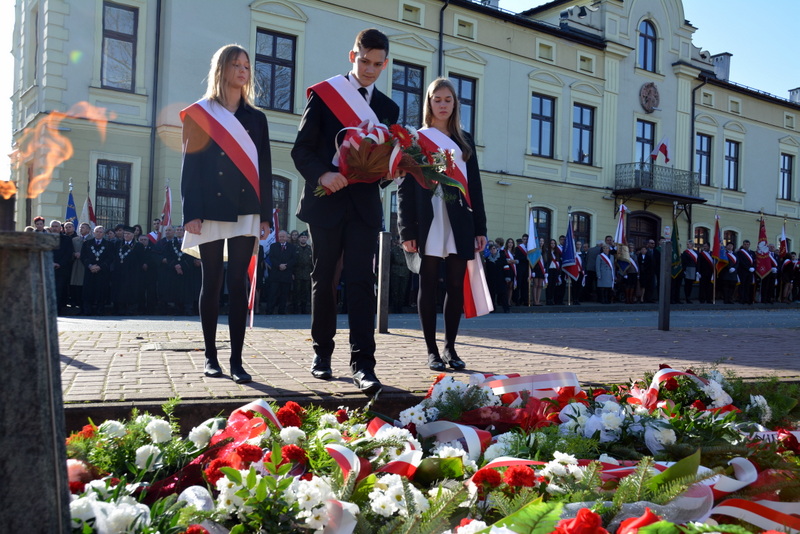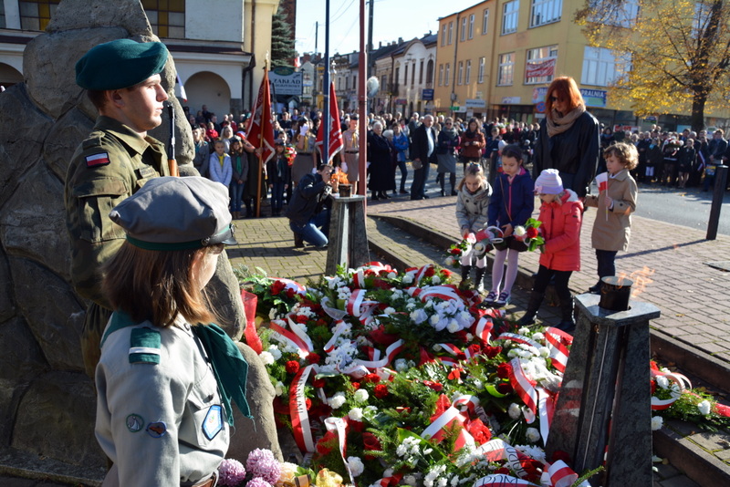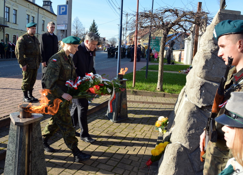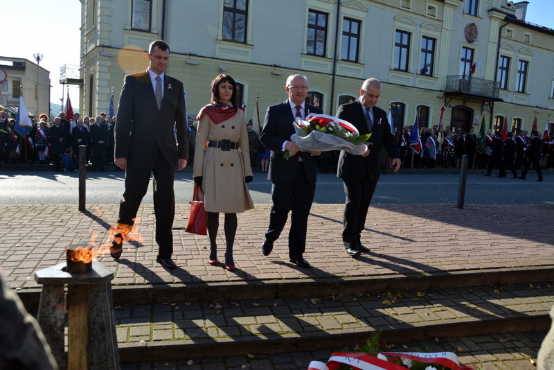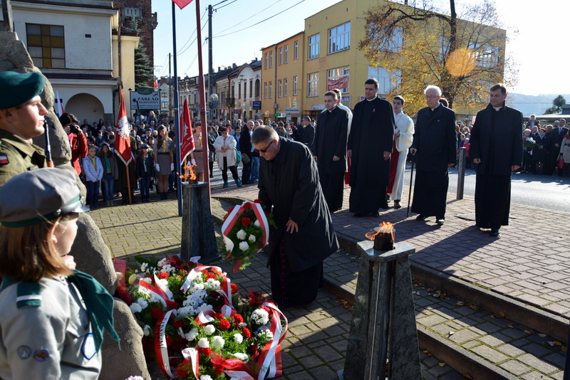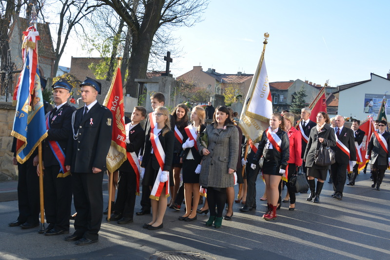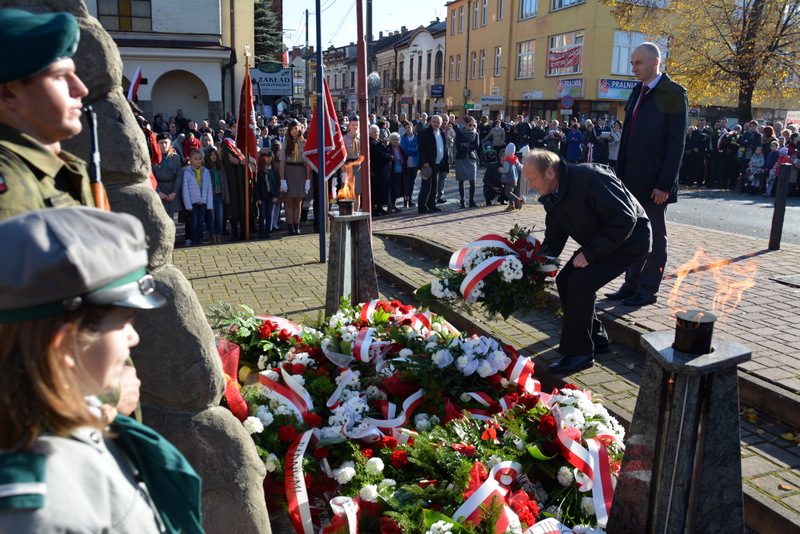 W imieniu mieszkańców gminy biało czerwoną wiązankę złożył burmistrz Grzegorz Wawryka, wraz z przybyłymi z Lwowa przedstawicielami "Strzelca". W imieniu Rady Miejskiej kwiaty złożył przewodniczący Tadeusz Pasierb oraz radni. Wiązanki złożyli również poseł Edward Czesak, starosta Andrzej Potępa, przedstawiciele partii politycznych, stowarzyszeń, instytucji, zakładów pracy, młodzież wszystkich szkół z terenu gminy, harcerze, oraz najmłodsi mieszkańcy, czyli przedszkolaki z Publicznego Przedszkola nr 4 w Brzesku.