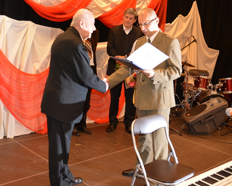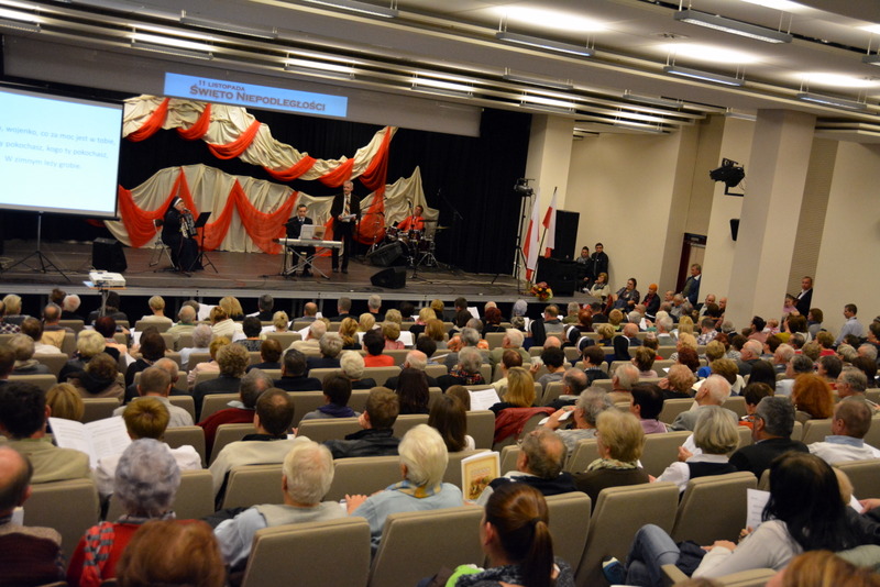 Dalsze radosne i zgodne jak zawsze w Brzesku świętowanie rocznicy odzyskania niepodległości przeniosło się do Regionalnego Centrum Kulturalno - Bibliotecznego. Po południu, w wypełnionej po brzegi sali widowiskowej, uroczystości rozpoczęły się od wręczenia członkowi ŚZŻ AK Janowi Opile patentu-mianowania na stopień kapitana rezerwy. Później były chóralne śpiewy, pieśni i piosenek patriotycznych, które trwały ponad dwie godziny. Aby wszyscy obecni mogli zgodnie śpiewać, burmistrz wraz z radnymi rozdali uczestnikom śpiewniki przygotowane przez biuro promocji.Każdy z obecnych mógł również skosztować znakomitej „grochówki legionowej”.