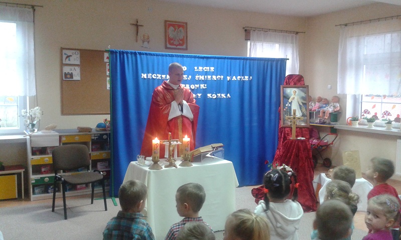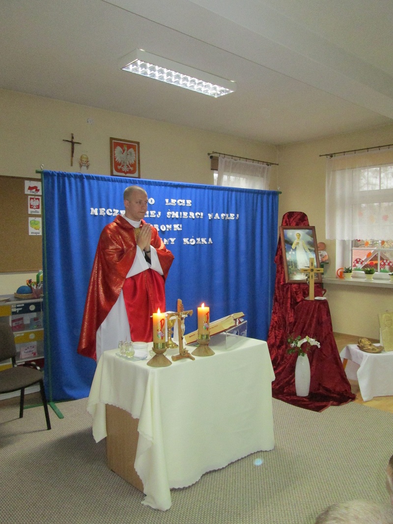 Z okazji Jubileuszu 100-lecia męczeńskiej śmierci bł. Karoliny Kózkówny w naszym przedszkolu została odprawiona również uroczysta Msza św. a po niej można było ucałować relikwie błogosławionej , które udostępnił naszej placówce ks. Wojciech Werner proboszcz Parafii Miłosierdzia Bożego w Brzesku. Niech osoba bł. Karoliny, przez którą Bóg ciągle do nas przemawia, pomoże nam na nowo odkrywać wartość i piękno naszej wiary oraz żyć jej pełnią na co dzień. Niech Patronka polskiej młodzieży będzie „Gwiazdą przewodnią” na drogach wiary i rzeczywistego umiłowania Boga. Mamy nadzieję, że za wstawiennictwem bł. Karoliny dostąpimy wielu łask , a jej postać będzie dla nas wzorem do naśladowania. (Beata Wolny)