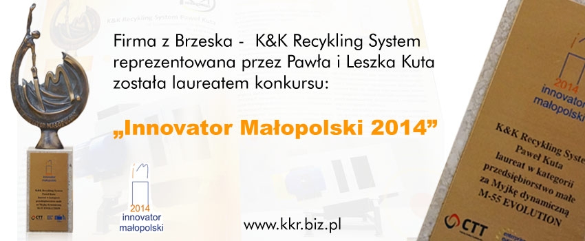 Firma z Brzeska - K&K Recykling System reprezentowana przez Pawła i Leszka Kuta została laureatem konkursu „INNOVATOR MAŁOPOLSKI 2014”.