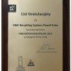Właściciele firmy K&K Recykling System dzięki zastosowanej innowacyjnej technologii w modelach myjek dynamicznych przeznaczonych do mycia tworzyw sztucznych a także nowatorskiemu podejściu do prowadzonej działalności gospodarczej nie tylko w kraju ale za granicą odebrali 18.11.2014 na uroczystej gali prestiżową statuetkę Innovatora Małopolski 2014.