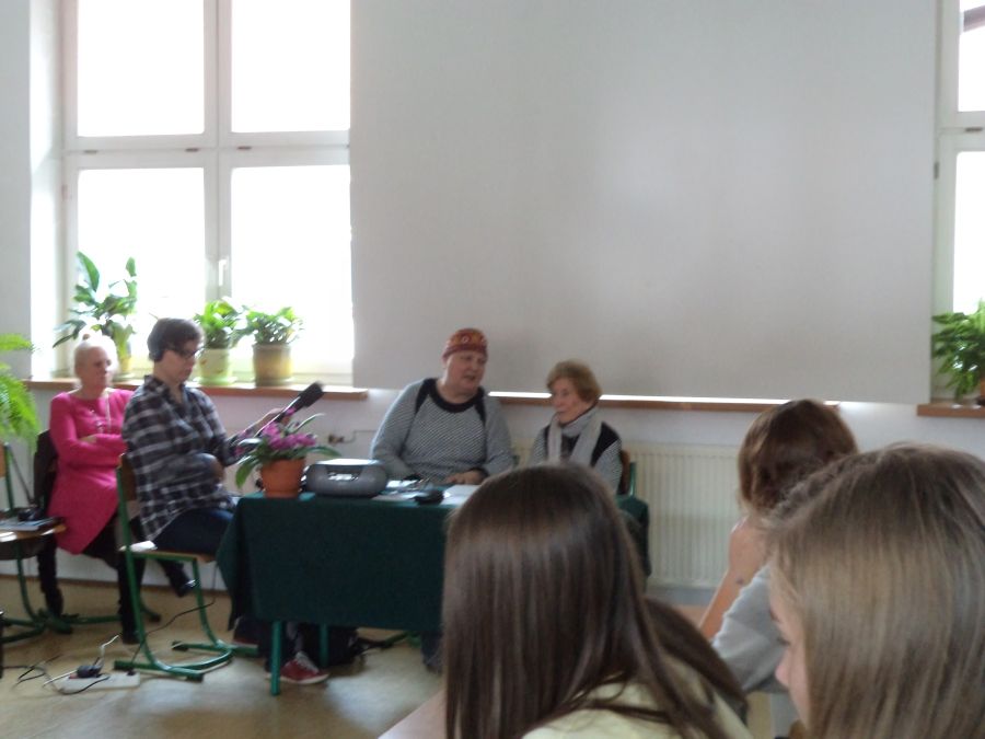 Wyjątkową wizytę w szkole zawdzięczamy także Pani Zuzannie Peters-Musiał, która gościła u siebie w domu pieśniarkę, wraz z jej polską przyjaciółką i opiekunką Joanną Brańską. Spotkanie w szkole zarejestrowała na dźwiękowej ścieżce redaktor Magdalena Balcerak z Fundacji Głos Ewangelii. Spotkanie odbyło się w bibliotece szkolnej, a towarzyszyła mu wystawa książek poświeconych tematyce żydowskiej z własnych zbiorów.