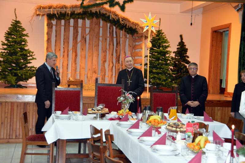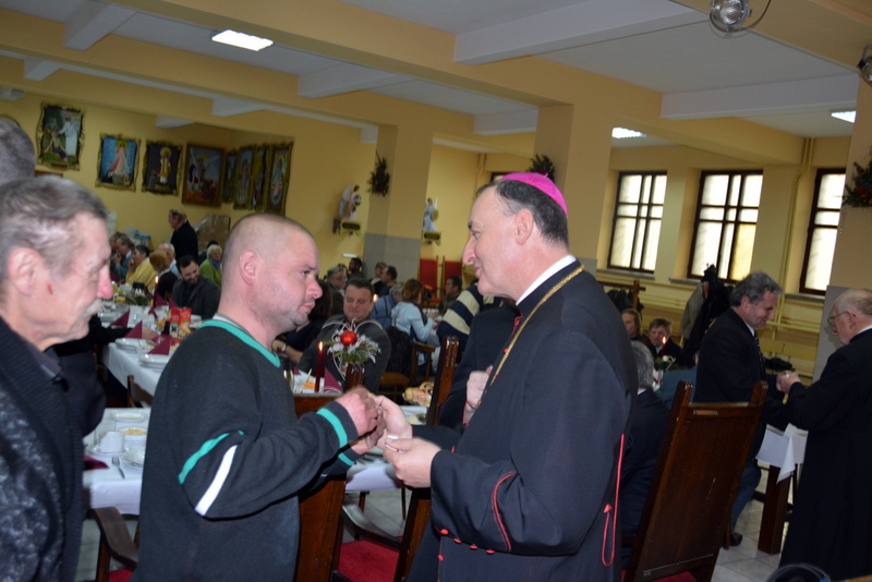 Uroczystą mszą odprawioną przez biskupa Andrzeja Jeża rozpoczęło się spotkanie wigilijne, którego organizatorami i fundatorami od wielu już lat są znani brzescy restauratorzy - Anna i Kazimierz Kuralowie. Biskup nie szczędził słów uznania dla Państwa Kuralów, którzy każdego roku przyjmują u siebie najbardziej potrzebujących - osoby samotne, starsze i ubogie.