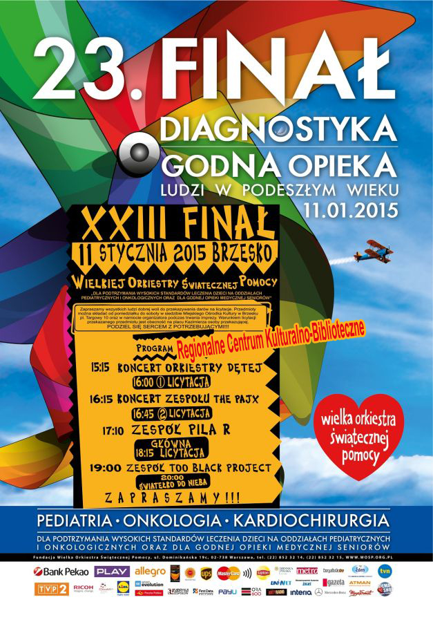 Na sprzęt diagnostyczny i pomoc medyczną dla osób w podeszłym wieku zbierane będą pieniądze w czasie 23. finału Wielkiej Orkiestry Świątecznej Pomocy. Szczegóły na plakacie.