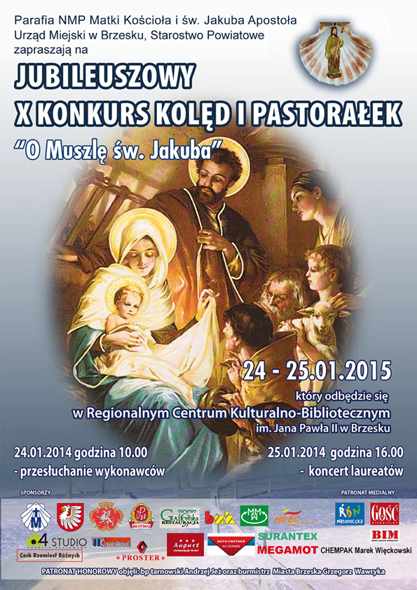 Parafia pod wezwaniem świętego Jakuba, Urząd Miejski i starostwo zapraszają na X Konkurs kolęd i pastorałek. Szczegóły na plakacie