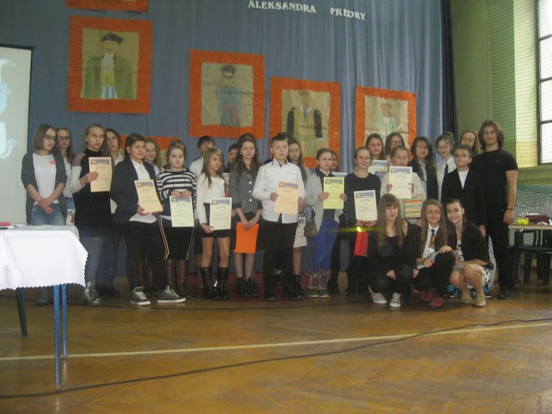 W trakcie oceny prac pisemnych uczniowie wraz z opiekunami obejrzeli przedstawienie przygotowane przez młodzież biorącą udział w projekcie: Jaki wpływ ma teatr na rozwój osobowości młodego człowieka? Zaprezentowali oni biografię Aleksandra Fredry, a także teksty jego autorstwa- szczególnie te, które adresowane są do dzieci. Całość dopełniła prezentacja multimedialna.