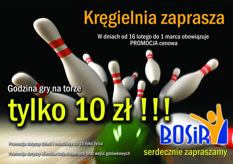 Brzeski Ośrodek Sportu i Rekreacji zaprasza dzieci oraz młodzież do spędzenia nadchodzących ferii zimowych na sportowo. Oferta skierowana jest do uczniów szkół podstawowych oraz gimnazjów, którzy przerwę w nauce rozpoczną w najbliższy poniedziałek. W okresie od 16 lutego do 1 marca brzeska kręgielnia oferuje naukę gry w kręgle, turnieje kręglarskie, oraz dodatkowe niespodzianki.Serdecznie zapraszamy.Szczegółowy program w załącznikach.