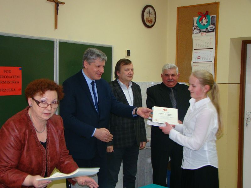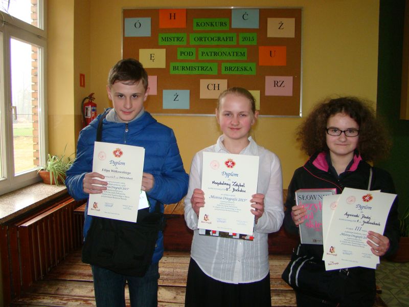 Konkurs „Mistrz Ortografii” organizowany przez Publiczną Szkołę Podstawową im ks. Jana Twardowskiego w Buczu odbył się już po raz czternasty. Od początku wydarzenie to cieszyło  się dużym zainteresowaniem wszystkich szkół gminy. Tak było i w tym roku, w konkursie wzięło 19 uczniów klas szóstych.  Patronat nad konkursem objął burmistrz Grzegorz Wawryka, który ufundował nagrody książkowe dla laureatów oraz pamiątkowe dyplomy dla uczestników konkursu. Ortograficzne zmagania przygotowały i przeprowadziły nauczycielki PSP w Buczu: Dorota Bałut i Magdalena Koryga. Ze strony gminy nad konkursem czuwał Naczelnik Wydziału Edukacji, Józef Cierniak.Tegoroczny test wymagał od uczniów doskonałej znajomości zasad ortograficznych, a także umiejętności zastosowania ich w praktyce. Dyktando na temat lunaparku również zawierało wiele trudności ortograficznych. Uczniowie poradzili sobie z tymi trudnymi zadaniami doskonale. Mistrzem Ortografii 2015 została Magdalena Zdybel z PSP nr 3 w Brzesku, miejsce II i III zajęli uczniowie PSP nr 1 w Jadownikach, kolejno Filip Witkowski i Agnieszka Dadej.Nagrody laureatom oraz dyplomy dla wszystkich uczestników konkursu, a także dla nauczycieli, którzy ich przygotowali wręczył burmistrz Grzegorz Wawryka. Towarzyszyli mu naczelnik WEKiS w Brzesku Józef Cierniak oraz sołtys Bucza Stanisław Milewski. Pogratulowali oni zwycięzcom i uczestnikom ich imponującej wiedzy i umiejętności ortograficznych, a także złożyli wyrazy uznania dla wszystkich nauczycieli, za ich trud włożony w przygotowanie uczniów.DSC02062DSC02064DSC02073DSC02077DSC02087
