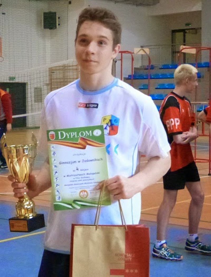 Zawodnicy Publicznego Gimnazjum w Jadownikach reprezentowali powiat brzeski w rozegranych Mistrzostwach Małopolski „Gimnazjada Młodzieży Szkolnej” w piłce siatkowej chłopców. W hali sportowej w Łącku 6 zespołów, mistrzów zawodów rejonowych walczyło o tytuł mistrza województwa, reprezentanta na zawody ogólnopolskie.Zespoły grały w dwóch grupach po 3 drużyny systemem „każdy z każdym”. Dwie ekipy z obu grup awansowały do strefy finałowej.Szkoła z Jadownik w eliminacjach wylosowała przeciwników z gimnazjów nr 9 z Nowego Sącza, oraz z Tenczyna. Pierwszy mecz wygrali zdecydowanie w dwóch setach do 13. W drugim z drużyną z Nowego Sącza przegrali po zaciętej walce 0:2 (32:34, 22:25). Zdobyte na tym etapie 3 punkty dały awans do finału. Mimo bardzo dobrej gry, po porażkach z zawodnikami Andrychowa 0:2 (21:25, 11:25), Krakowa 1:2 (15:25, 25:23, 15:7) i Nowego Sącza 0:2 (32:34, 25:22) ostatecznie zajęli 4. Miejsce.Zespół Jadownik wystąpił w składzie: Mikołaj Bryła, Kacper Chrabąszcz, Filip Halik, Adrian Hebda, Krzysztof Król, Dawid Lizak, Grzegorz Osiecki, Jakub Rosa, Przemysław Stąsiek, Fabian Szylar, Kacper Węgrzyn, Krzysztof Wijas. Trenerem był Jakub Szpil nauczyciel Wf.Mistrzostwo Małopolski zdobyło PG Nr 46 w Krakowie. Wszystkie drużyny zostały nagrodzone pamiątkowymi pucharami i dyplomami.Organizatorem mistrzostw był Małopolski Szkolny Związek Sportowy Kraków, Międzyszkolny Ośrodek Sportowy Powiatu Nowosądeckiego, Zespół Szkół w Łącku.Fot.Paweł Markiewicz