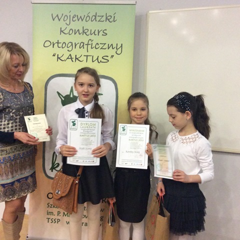 Najpierw trzecioklasiści przystąpili do IX Wojewódzkiego Konkursu Ortograficznego „Kaktus". Zmagania te przebiegały w trzech etapach. Pierwszy z nich, na szczeblu szkolnym, miał formę pisemną i składał się z dyktanda oraz testu ortograficznego. Uczestniczyło w nim 1500 uczniów z Małopolski, w tym 24 z „trójki”. Trzecioklasiści wykazali się zarówno znajomością podstawowych zasad ortograficznych jak i praktycznym ich zastosowaniem. Uczniowie, którzy uzyskali co najmniej 95% punktów, zakwalifikowani zostali do drugiego, międzyszkolnego etapu, przeprowadzonego przez organizatorów WKO „Kaktus”, który odbył się już w Krakowie w Szkole Podstawowej im. P. Michałowskiego. „Trójkę” reprezentowały: Karolina Hebda z klasy 3 B ( opiekun - Elżbieta Multan), Klaudia Sambor z kl. 3 C (opiekun - Luiza Płaczek) oraz Otylia Styrna, również z kl. 3 C.