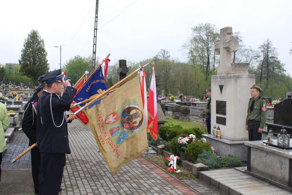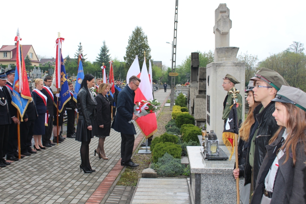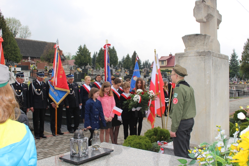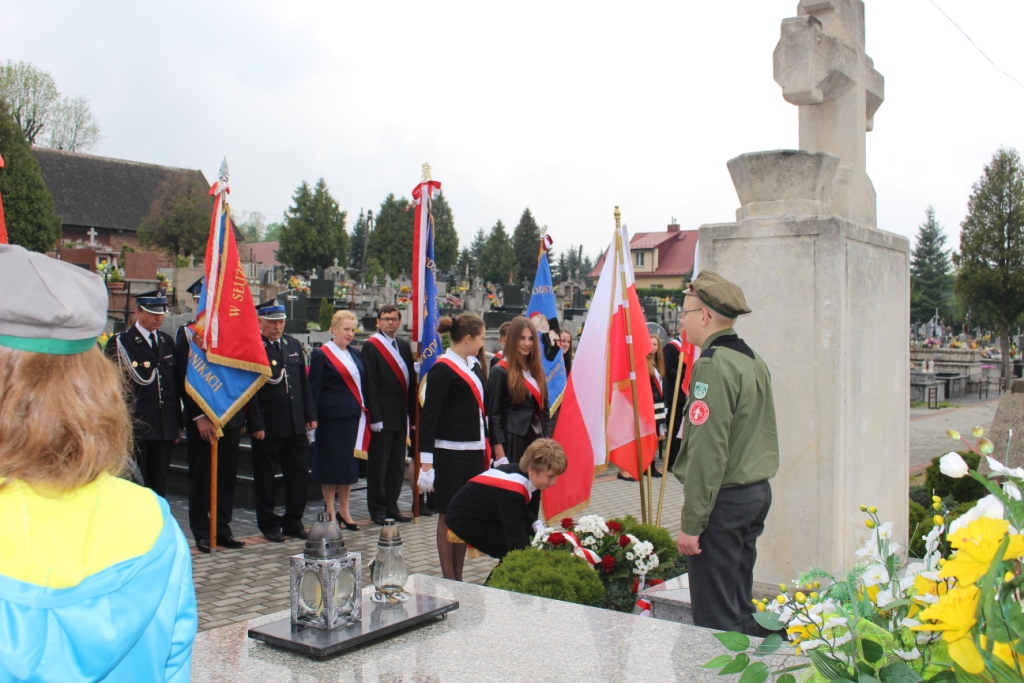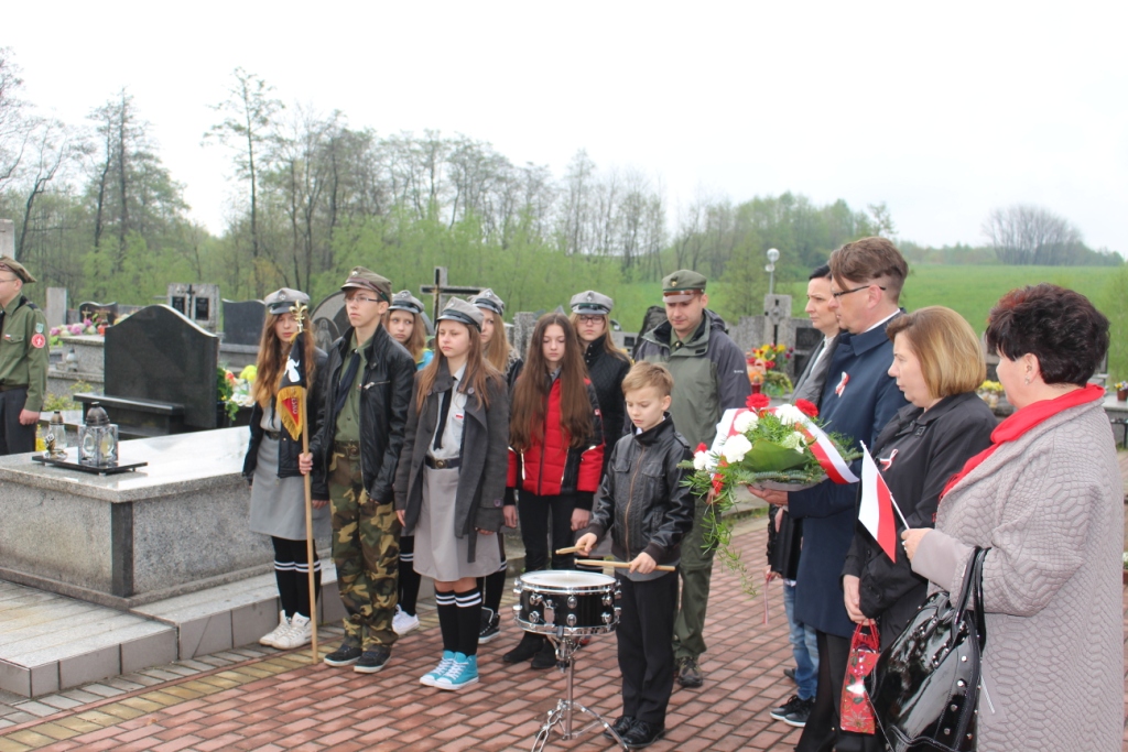 Po mszy jej uczestnicy przemaszerowali pod pomnik pamięci na cmentarzu parafialnym, gdzie w asyście pocztów sztandarowych odśpiewano hymn narodowy i złożono kwiaty.