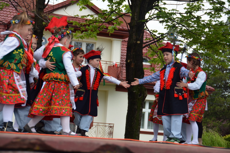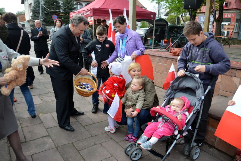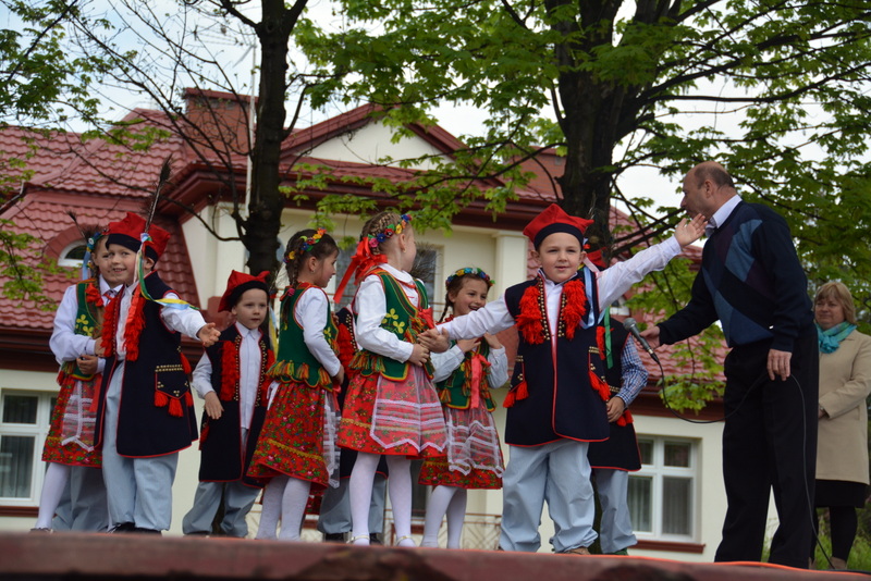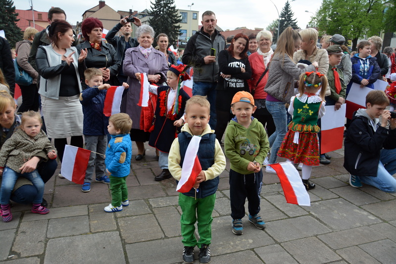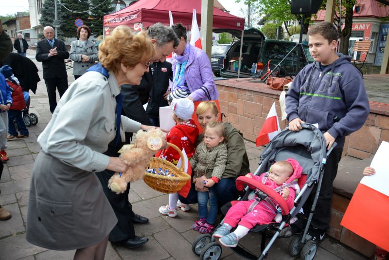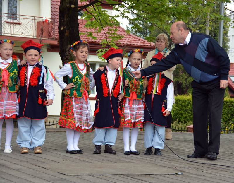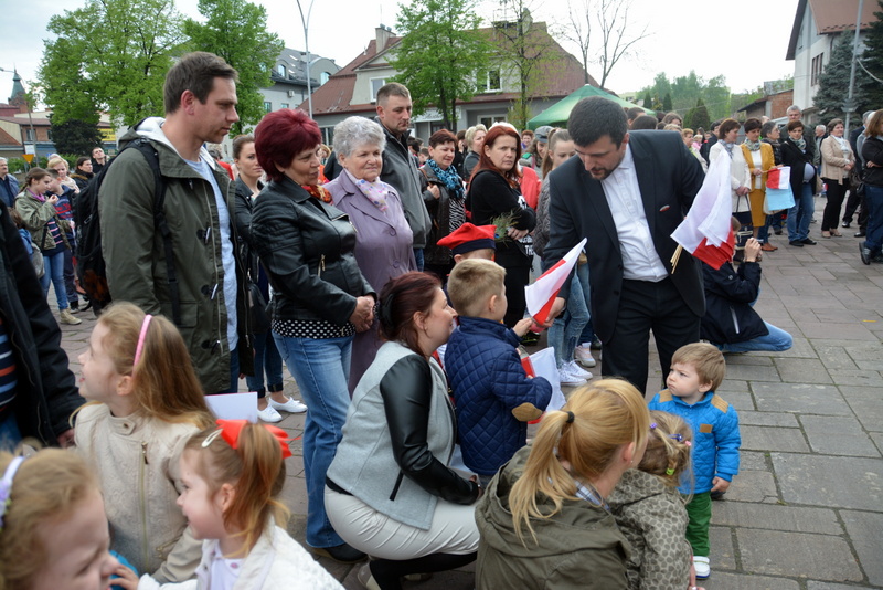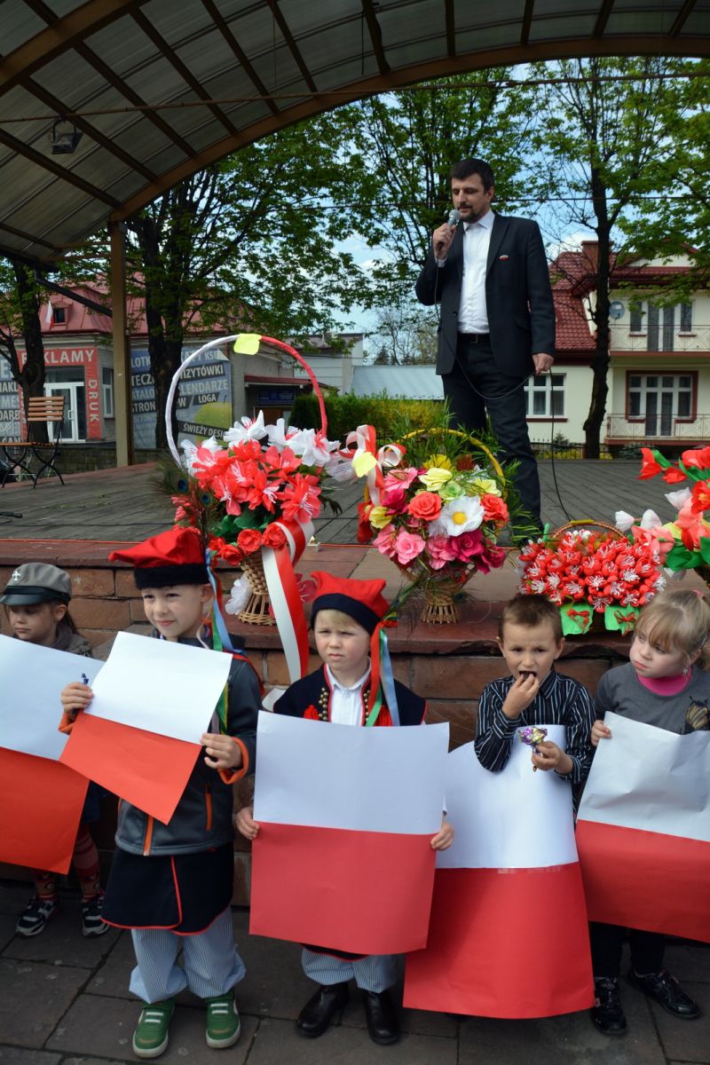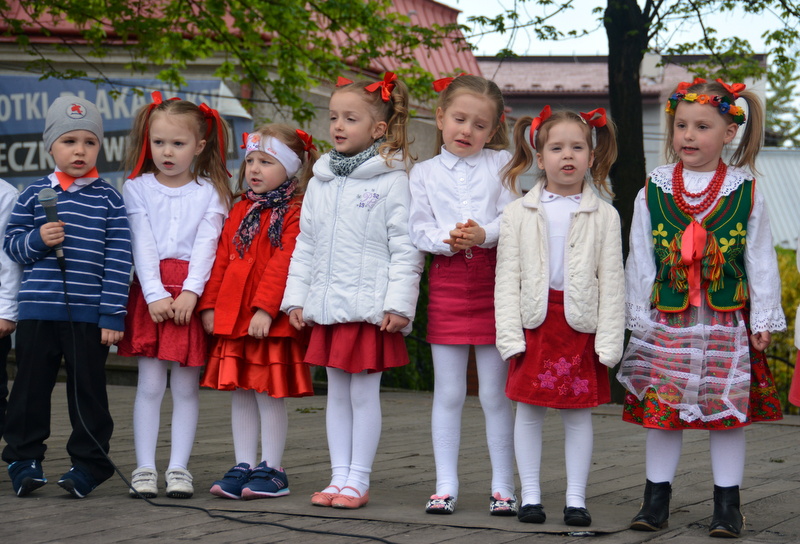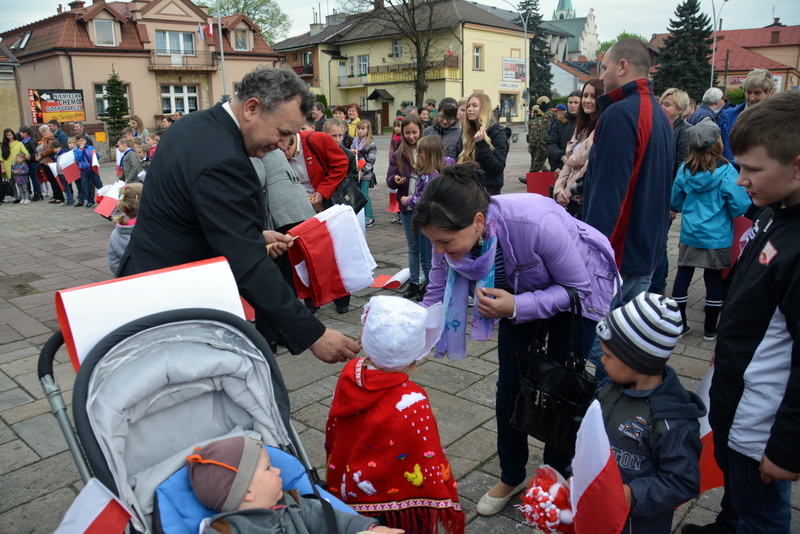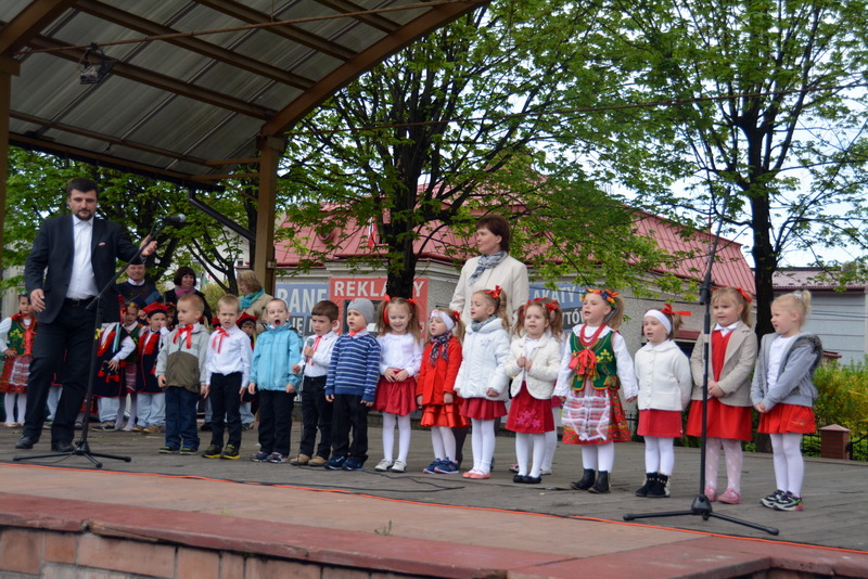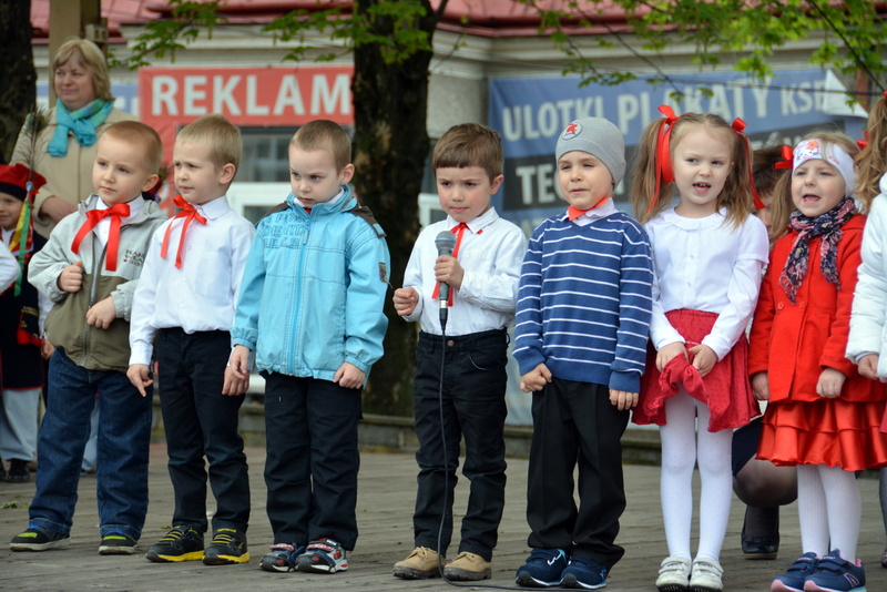 Uroczystości tradycyjnie już rozpoczęły się od pokazu narodowego tańca - poloneza. Z wdziękiem i artyzmem odtańczyły go dzieci z Publicznego Przedszkola nr 9, które śpiewały dla publiczności patriotyczne pieśni i recytowały wiersze. Program słowno-muzyczny zaprezentowali także uczniowie z Gimnazjum nr 1 w Brzesku. Członkowie Stowarzyszenia Ziemi Brzeskiej „Porozumienie” - Józef Kubas, Jadwiga Kramer i Zbigniew Mastalerz rozdawali uczestnikom imprezy flagi ufundowane przez burmistrza Grzegorza Wawrykę, najmłodsi dostali słodycze.