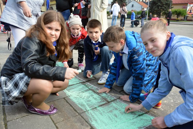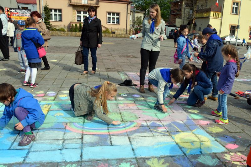 Po południu płyta Placu Kazimierza Wielkiego pokryła się rysunkami wykonanymi przez zuchów i harcerzy, imponujące, kolorowe rysunki wykonywane były kredą pod wspólnym tytułem „To właśnie Polska”. Na zakończenie odbył się konkurs wiedzy dotyczący barw i symboli narodowych, historii Świąt Majowych władz Polski, a także historii gminy i powiatu. -Biorący udział w konkursie harcerze popisali się imponującą wiedzą. Startowało w nim osiem drużyn, a najlepsi okazali się harcerze z Szkoły Podstawowej nr 2 w Brzesku oraz z Gimnazjum w Jadownikach - dodaje Maria Tyka. .