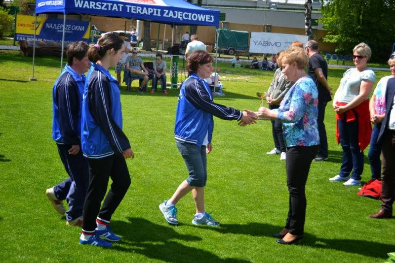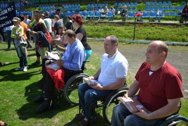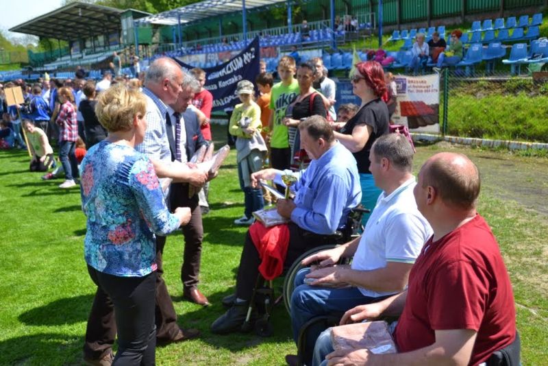 Na stadionie Okocimskiego Klubu Sportowego spotkało się ponad 240 osób niepełnosprawnych, wraz z opiekunami, z powiatów brzeskiego, tarnowskiego i dębickiego. Celem głównym Spartakiady była integracja społeczna, propagowanie aktywności ruchowej i zdrowej rywalizacji.Zawodnicy wystartowali w sześciu konkurencjach drużynowych: sztafeta 4x50m dziewcząt i chłopców, drużynowy bieg na nartach, tor przeszkód, miniturniej piłki nożnej, koszykówka na wózkach, oraz pięciu indywidualnych: rzut piłką lekarską, rzuty do celu, konkurs kapkowania, łowienie ryb na czas oraz rozgrywki w darta. W imprezie wzięło udział 10 drużyn: Warsztaty Terapii Zajęciowej im. Jana Pawła II z Tarnowa, Warsztaty Terapii Zajęciowej z ul. Ostrogskich, z Tarnowa, Warsztaty Terapii Zajęciowej z Brzeska, Woli Rzędzińskiej, podopieczni Domu Pomocy Społecznej z Brzeska, drużyna Małopolskiego Związku Osób Niepełnosprawnych, uczniowie Specjalnego Ośrodka Szkolno - Wychowawczego z Tarnowa, uczniowie z Oddziału Integracyjnego Publicznego Gimnazjum nr 2 z Brzeska oraz dzieci z Publicznego Przedszkola nr 10 z Brzeska.Przez całą spartakiadę zawodnikom towarzyszył duch rywalizacji, dobra zabawa i piękna pogoda. Uczestnicy mogli skorzystać z napojów i drożdżówek, oraz zjeść ciepły posiłek. Zwycięzcy poszczególnych konkurencji otrzymali puchary, przedszkolaki medale i słodycze, a wszyscy uczestnicy za swój wysiłek i zaangażowanie otrzymali nagrody indywidualne.Serdecznie dziękujemy wolontariuszom i nauczycielom z Publicznego Gimnazjum nr 2 w Brzesku, za pomoc przy prowadzeniu poszczególnych konkurencji sportowych i dbanie o bezpieczeństwo i porządek na stadionie. Dziękujemy Zarządowi Okocimskiego Klubu Sportowego za udostępnienie stadionu na czas trwania XI Spartakiady oraz wszystkim osobom, które tego dnia były z nami.Wyniki w poszczególnych konkurencjach:Miniturniej piłki nożnej:I miejsce – Specjalny Ośrodek Szkolno - Wychowawczy, TarnówII miejsce – WTZ BrzeskoIII miejsce – Oddział Integracyjny Publicznego Gimnazjum nr 2, BrzeskoSztafeta 4x50m dziewczątI miejsce – WTZ Wola RzędzińskaII miejsce – SOSW TarnówIII miejsce – WTZ BrzeskoSztafeta 4x50m chłopcówI miejsce – WTZ BrzeskoII miejsce – Oddział Integracyjny Publicznego Gimnazjum nr 2, BrzeskoIII miejsce – SOSW TarnówTor PrzeszkódI miejsce – WTZ Wola Rzędzińska, dziewczętaII miejsce – WTZ Brzesko, chłopcyIII miejsce – WTZ Wola Rzędzińska, chłopcyBieg na nartachI miejsce – WTZ BrzeskoII miejsce – SOSW TarnówIII miejsce – Oddział Integracyjny Publicznego Gimnazjum nr 2, BrzeskoRzut piłką lekarskaI miejsce – Adrian Kozłowski, Oddział Integracyjny Publicznego Gimnazjum nr 2, BrzeskoII miejsce – Stanisław Warias, ŚDS OleśnicaIII miejsce – Piotr Kloch, SOSW TarnówRzuty do celuI miejsce –Tomasz Kubiś, WTZ Wola RzędzińskaII miejsce – Barbara Ćwioro, WTZ BrzeskoIII miejsce – Edward Luszyn, WTZ im. Jana Pawła II TarnówKonkurs KapkowaniaI miejsce – Andrzej Dziedzic z WTZ BrzeskoŁowienie ryb na czasI miejsce – Stanisław Nowak, Oddział Integracyjny Publicznego Gimnazjum nr 2II miejsce – Dariusz Leżoń, ŚDS OleśnicaIII miejsce – Adam Gargulski, ŚDS OleśnicaTurniej DartaI miejsce – Piotr Kloch, SOSW TarnówII miejsce – Michalina Kaczor, WTZ Wola RzędzińskaIII miejsce – Tomasz Cyran, WTZ BrzeskoWTZ Brzesko