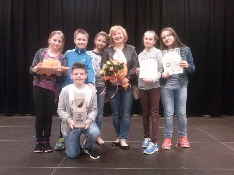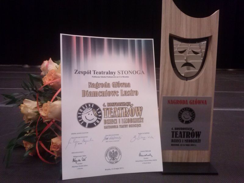 Zespół Konsultantów: Ewa Cypcarz Bogucka - aktorka, Bogdan Słomiński – aktor, Jacek Milczanowski – aktor, reżyser, scenarzysta po obejrzeniu 31 przedstawień teatralnych (w tym 22 w kategorii teatrów dziecięcych i 9 w kategorii młodzieżowej) przyznali nagrodę główną DIAMENTOWE LUSTRO zespołowi teatralnemu STONOGA z Publicznej Szkoły Podstawowej nr 2 w Brzesku, za spektakl „Ufolandia”.Scenariusz, reżyseria, scenografia, kostiumy – Agata Podłęcka , opiekunka grupy. Aranżacje muzyczne – Andrzej Gicala, pomoc scenograficzna – Anna Serwin, rodzice.