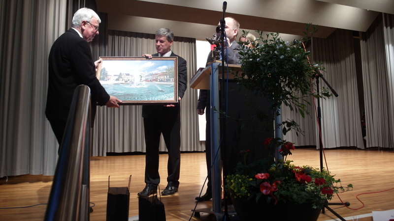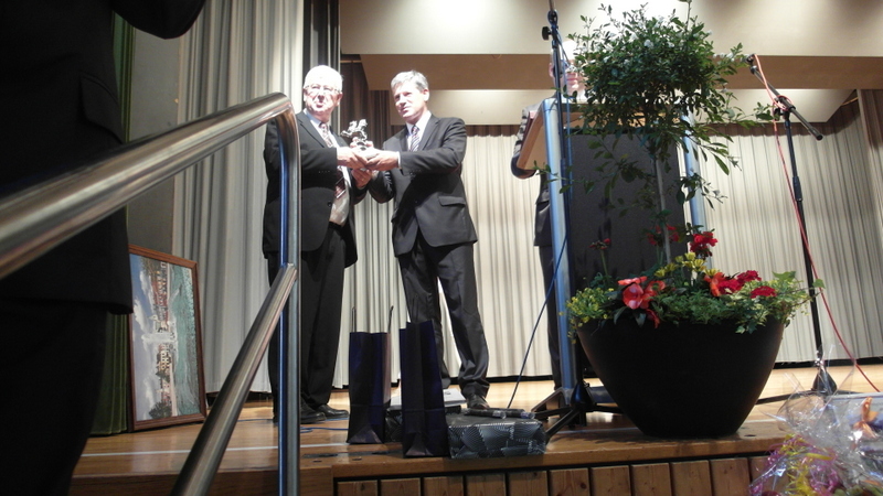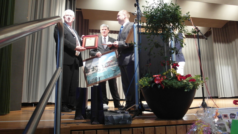 Na uroczystym pożegnaniu przygotowanym przez zastępcę burmistrza Christofa Fisela gościli przedstawiciele władz Badenii-Wirtembergii, burmistrzowie zaprzyjaźnionych miast, instytucji, ponad 500 mieszkańców Langenensligen, oraz delegacja władz Brzeska. To pożegnanie było znakomitą okazją do uhonorowania burmistrza Wernera Gebele tytułem Honorowego Obywatela Miasta Brzeska i wręczenia mu statuetki gryfa także obrazu z widokiem brzeskiego Rynku. Po odczytaniu laudacji przez burmistrza Grzegorza Wawrykę, oraz uchwały Rady Miejskiej Brzeska przez przewodniczącego Krzysztofa Ojczyka przyznającej tytuł, zaproszeni goście oraz mieszkańcy przyjęli tę wiadomość gromkimi oklaskami. Piękną uroczystość pożegnania uświetniły występy chórów: dziecięcego oraz męskiego, a także wspaniały koncert 80 osobowej orkiestry złożonej z muzyków, mieszkańców gminy Langenenslingen.