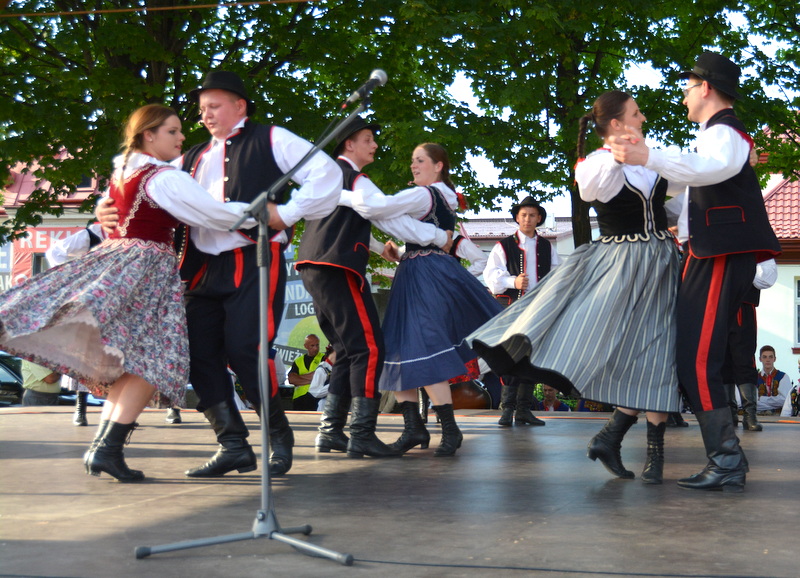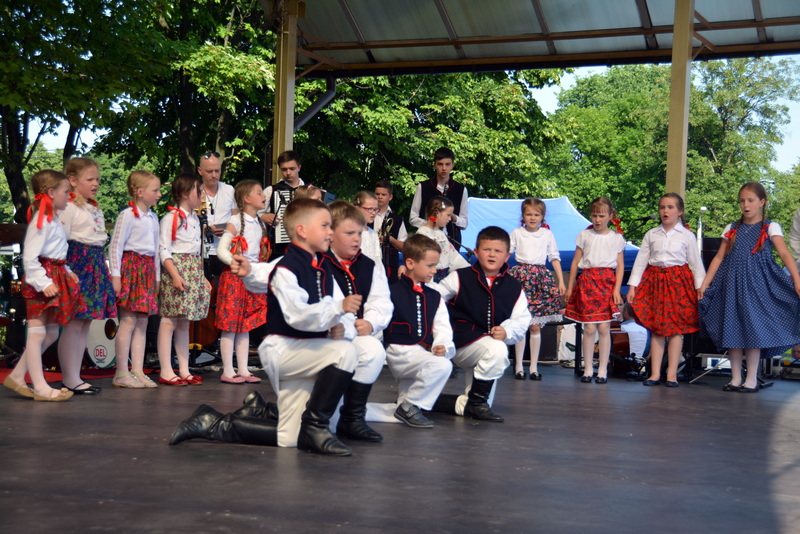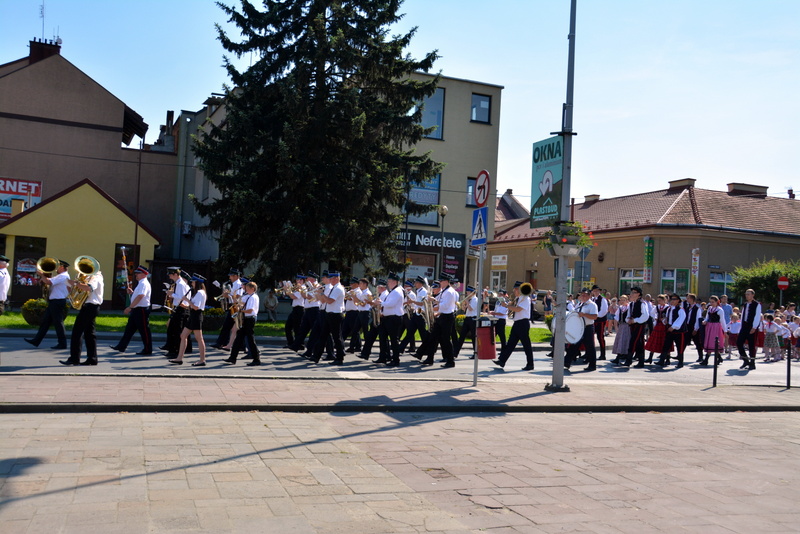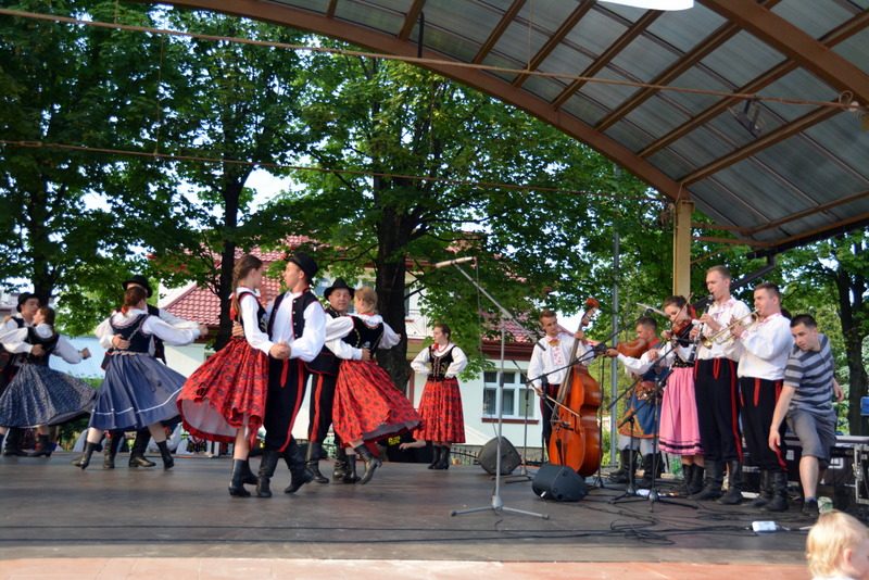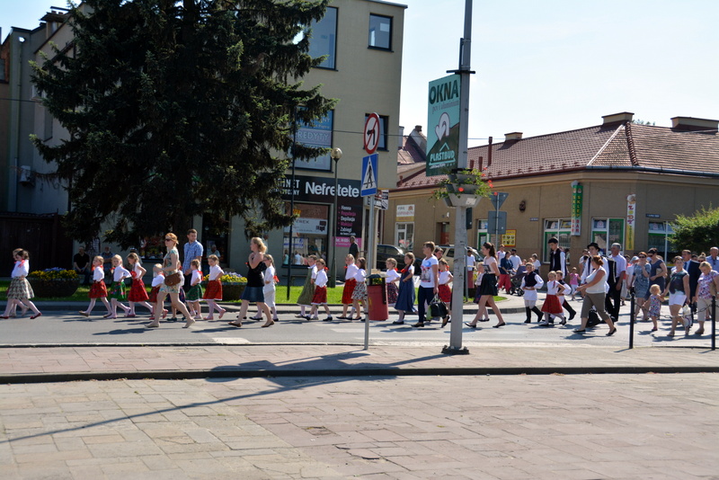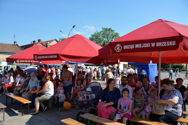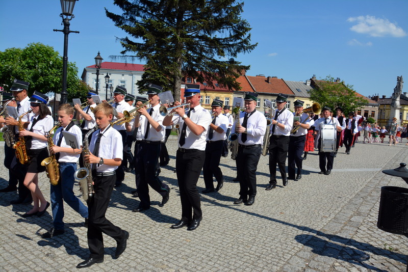 Tancerze, muzycy i widzowie barwnym korowodem przeszli z ronda na rynek, a następnie na Plac Kazimierza Wielkiego, gdzie jako pierwsze zaprezentowały się orkiestry dęte z Iwkowej i z Brzeska. Potem przyszła kolej na występy zespołów folklorystycznych, które wzbudzały szczery zachwyt licznie zgromadzonych widzów. Na scenie kolejno prezentowali się „Mali iwkowianie”, „Promyczki”, Zespół Pieśni i Tańca Iwkowianie oraz Krakowiacy Ziemi Brzeskiej.