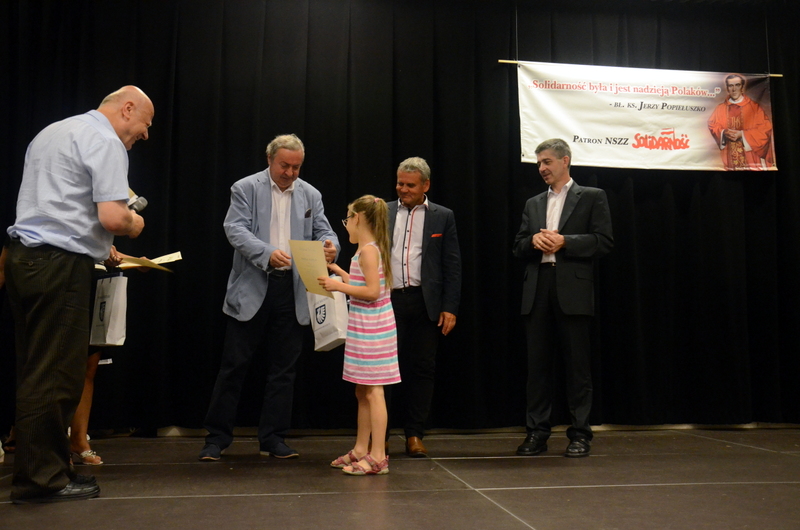 W dniu 6 lipca 2015 r. w Miejskim Ośrodku Kultury w Brzesku odbyła się impreza z okazji 35-lecia powstania Solidarności „Dzień z Solidarnością, w której uczestniczyło ok. 130 dzieci. Organizatorem uroczystości był: Miejski Ośrodek Kultury w Brzesku i Komisje Zakładowe NSZZ Solidarność w Brzesku. W dniu tym odbył się konkurs piosenki pt. „Powrót do lat 80-tych” i konkurs plastyczny pt. „Moja mała Ojczyzna” a także pod okiem Pań z MOK w Brzesku dzieci tańczyły w rytm muzyki, oraz oglądały film.Konkurs plastyczny odbył się w 4 kategoriach. Udział w konkursie wzięło aż 34 uczestników. Na wykonanie pracy przeznaczono zaledwie jedną godzinę. I tak w kat.przedszkolnej:I miejsce – Łukasz NowakII miejsce – Antoni LudefIII m. – Michał Ludefw kat. szkoła podstawowa kl. I-III:I m. – Kamil GórkaII m. – Kacper RzeźnikIII m. – Emilia GórkaW kategorii tej wyróżniono również prace: Sebastiana Zacharę, Jagodę Milę, Nadię Kitę, Marcela Wesołowskiego, Gabriela Madeję i Julię Wójcik.w kat. szkoła podstawowa kl. IV-VI:I m. – Katarzyna GadzinaII m. – Kamila KitaIII m. – Julia PolkowskaWyróżnienia otrzymali: Krzysztof Wiśniowski, Aleksandra Chruściel, Łukasz Karaś i Ania Kotra.w kat. gimnazja: Im. – zajęła Wiktoria Zydroń, która jako jedyna zgłosiła się do konkursu.Konkurs piosenki odbył się w 2 kategoriach: szkoła podstawowa kl. I-III i kl. IV-VI. W konkursie udział wzięło 12 dzieci.W kat. szkoła podstawowa kl. I-III:I m. – Julia KutaII m. – Mateusz PiwowarskiIII m. – Nadia KitaW kat. szkoła podstawowa kl. IV-VI:I m. – Patryk LedzińskiII m. – Emilia WesołowskaIII m. – Karolina Przybyło, Kinga KuralWyróżnienia otrzymali: Julia Wójcik, Karolina Wójcik i Wiktoria WójcikNagrody wręczali: zastępca burmistrza Brzeska Jerzy Tyrkiel, w imieniu starostwa powiatowego wicestarosta Ryszard Ożóg, oraz Przewodniczący Regionu Małopolskiego NSZZ Solidarność Wojciech Grzeszek, które to osoby objęły Patronat Honorowy nad całością uroczystości.„Dzień z Solidarnością” zakończył się miła niespodzianką, a mianowicie każdy uczestnik został obdarowany słodkościami, które ufundowali: Urząd Miejski, Starostwo Powiatowe w Brzesku, Region Małopolski NSZZ Solidarność, Brzeski Ośrodek Sportu i Rekreacji, Miejskie Przedsiębiorstwo Energetyki Cieplnej w Brzesku, Betoniarnia Z.P.H.U Jerzy Mikołajek, oraz Komisje Zakładowe NSZZ Solidarność w Brzesku.Na zakończenie Ludwik Korta, kierownik Oddziału Nr 4 w Brzesku podziękował wszystkim uczestnikom „Dnia z Solidarnością”, zwłaszcza przedstawicielom samorządów i Przewodniczącemu Regionu Małopolskiego NSZZ Solidarność, który w imieniu NSZZ Solidarność podziękował za pomoc w organizacji „Dnia z Solidarnością” Pani Dyrektor MOK w Brzesku Małgorzacie Cuber.