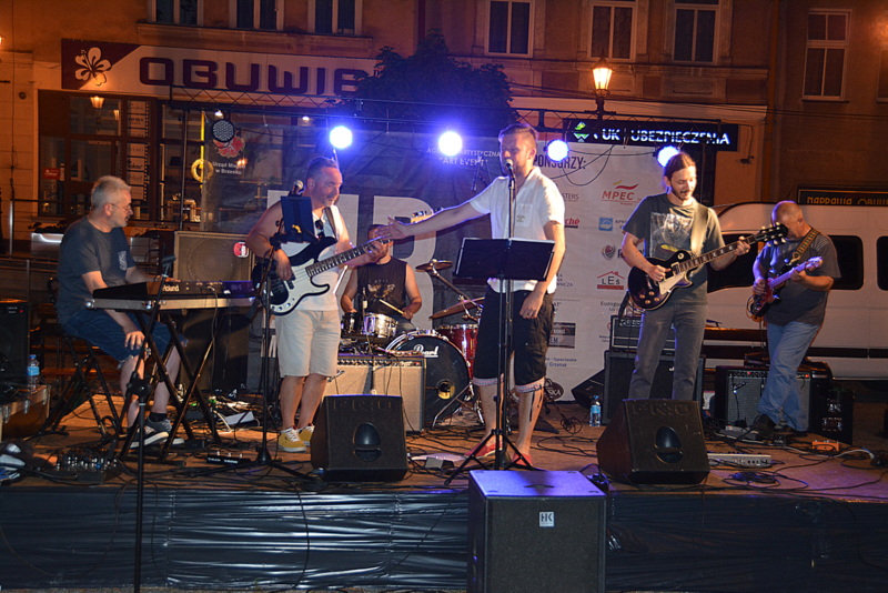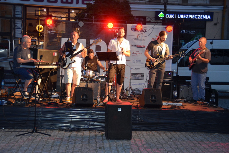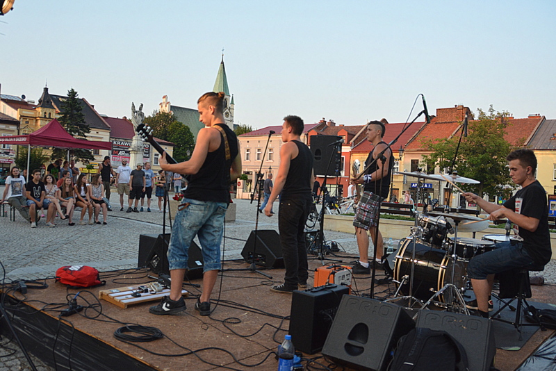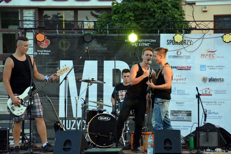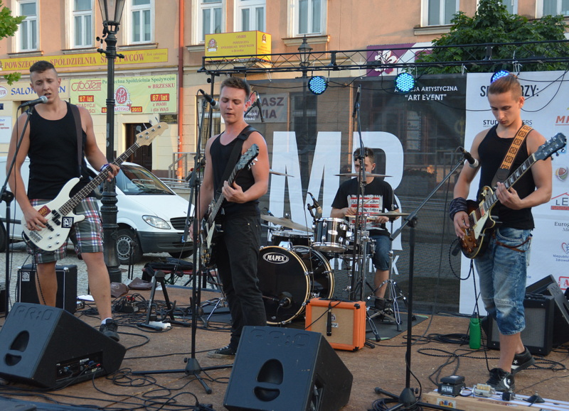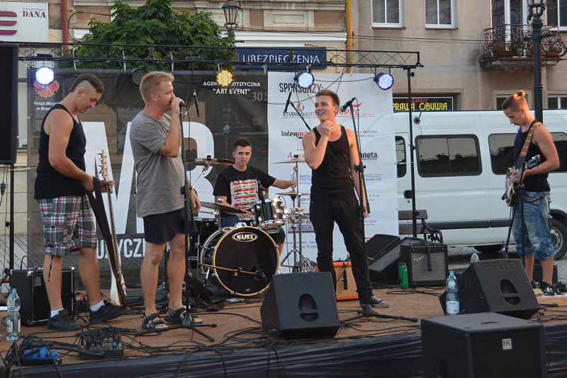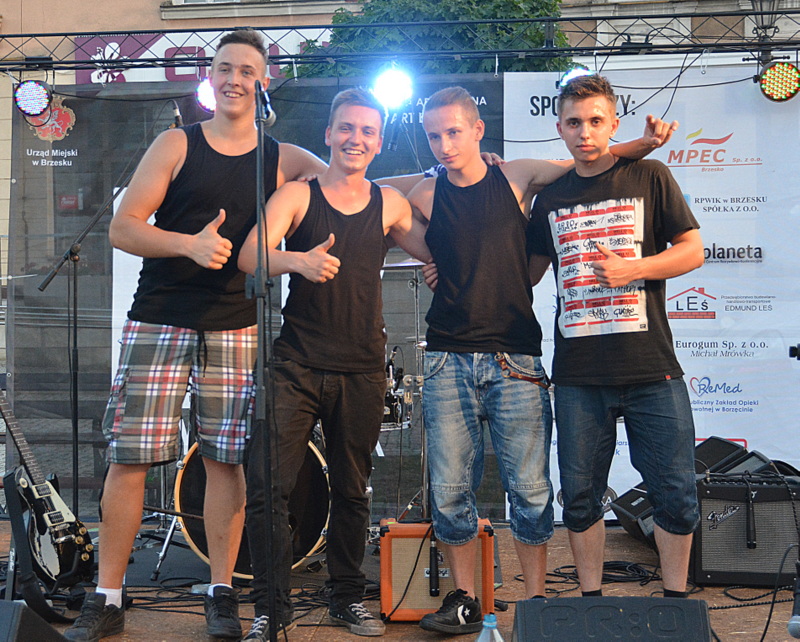Muzyczny Rynek wreszcie eksplodował. Wszystko za sprawą zespołu Insanity, który wprawdzie wystąpił jako suport, ale stał się niekwestionowaną gwiazdą wieczoru. Dla czwórki młodych muzyków z Brzeskai okolic był to oficjalny debiut. Wcześniej grali na pikniku w Okocimiu i na „osiemnastce” w pubie Azyl. Koncert na Rynku miał być dla nich pierwszym poważnym sprawdzianem muzycznych umiejętności i trzeba przyznać, że zdali ten egzamin na szóstkę. Skład grupy tworzą Natan Mikulski (gitara, vocal), Tomasz Przybylski (gitara, vocal), Marcin Rysak „Rysiek” (bass, vocal) i Adrian Witek (perkusja).Insanity to zespól, który w obecnym składzie gra od początku tegorocznych wakacji. Każdy z członków zespołu muzykował już w innych formacjach. Do stworzenia tego dobrze rozumiejącego się kwartetu skłoniły ich tożsame spojrzenie na muzykę i chęć nieskrępowanej zabawy na rockowej scenie. W sobotni zespół zaprezentowali repertuar złożony z coverów utworów, które powstały, kiedy jeszcze żadnego z muzyków Insanity nie było na świecie. Rozpoczęli od kultowego „Killing in the name” amerykańskiej kapeli rapcore'owej Rage Against the Machine. Ten numer w oryginale zagrany był w Polsce na żywo tylko raz w 1994 roku. W tym samym roku gitarowy motyw z tego utworu wykorzystał w jednej ze swoich propozycji polski zespół Flapjack. Inasanity przypomniał ten utwór w całości, a później zauroczył wymagającą brzeską publiczność wiązanką sztandarowych przebojów polskich zespołów punkrockowych z lat 90. ubiegłego wieku. Najpierw wykonali „1944 w okopie” legendarnej kapeli KSU, by przypomnieć „Rajdowca” wykonywanego niegdyś przez Pawła Kukiza i Piersi. W lamusie polskiego punkrocka wygrzebali zapomniane już „Spodnie z GS-u”, znane bardziej z wykonania przez Farben Lehre, chociaż naprawdę będące jedyny autorskim utworem coverowej formacji The Butels. Na koniec dorzucili jeszcze dwie perełki z repertuaru The Bill – „Kurczaka zapłodowego” i „Mam dwie lewe ręce”. Tak jak oni pozytywnie zaskoczyli publiczność, tak i oni sami zostali zaskoczeni przez fanów rocka. Okazało się bowiem, że ten krótki koncert dopiero rozgrzał widzów, którzy zaczęli domagać się bisów. Ich głośno akcentowanym życzeniom stało się zadość. Pozostaje mieć nadzieję, że Insanity to nie tylko wakacyjna przygoda, ale dopiero początek dobrze zapowiadającej się kariery, a ich następny koncert będzie bardziej rozbudowany.Przyznać należy, że poprzeczkę mieli zawieszoną wysoko, bo na Muzycznym Rynku tym razem padł rekord frekwencji. Tłumów wprawdzie jeszcze nie było, ale organizatorzy (Biuro Promocji Urzędu Miejskiego i firma Art Event) otrzymali od publiczność i wyraźny sygnał, że ich propozycja trafiła na podatny grunt. Z kolei Insanity to przykład na to, że ta cykliczna impreza jest doskonałą okazją do zaprezentowania się po raz pierwszy szerszemu audytorium. U Natana, Tomka, Marcina i Adriana początkowo dało się wyczuć tremę, która przeobraziła się w coraz większy luz pod wpływem żywiołowo reagujących fanów. Swoim koncertem utorowali drogę do serc publiczności dla zespołu Billy Goats grającego country i bluesa a który przyjechał do Brzeska z Łużnej. Znakomita kapela dała wspaniały koncert a publiczność nagrodziła ich występ gromkimi brawami, zmuszając do licznych bisów.Reasumując, w minioną sobotę na Muzycznym Rynku zagrały dwie równorzędne – pod kątem artystycznym (wysokim) – kapele.