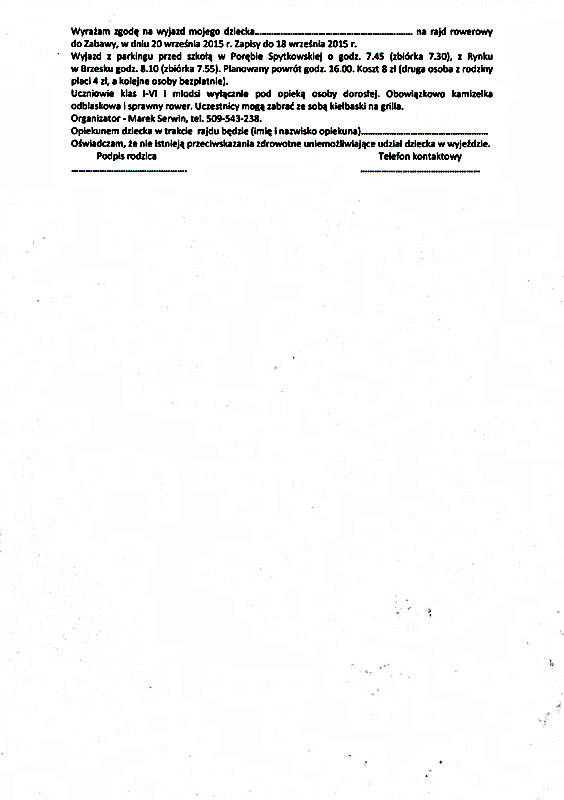 Zarząd Osiedla Okocimskie zaprasza wszystkich mieszkańców na V Jesienny Odblaskowy Rajd Rowerowy do Zabawy. Wyjazd z Rynku w Brzesku 20 września (niedziela) o godz. 8.10 (zbiórka godz. 7.55). Planowany powrót około godz.16.00.