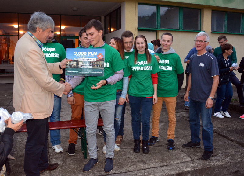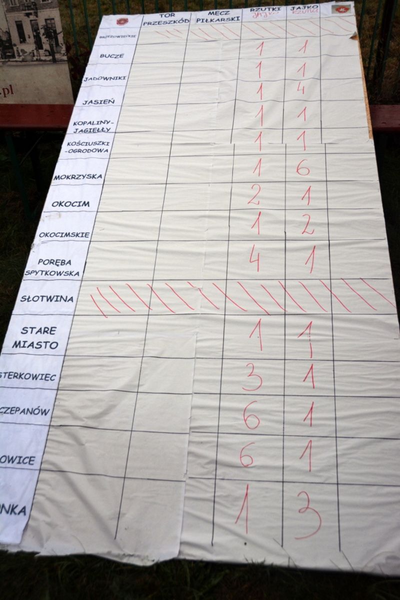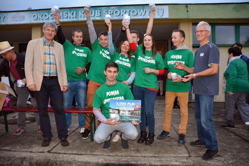 Kilkuset widzów obserwowało zawody i zabawy zorganizowane w ramach III turnieju sołectw i osiedli gminy Brzesko. Gospodarzem imprezy byli burmistrz Brzeska Grzegorz Wawryka, przewodniczący rady miejskiej Krzysztof Ojczyk oraz Zarząd Osiedla Zielonka z przewodniczącym Antonim Staszczykiem na czele.Było emocjonująco, zabawnie i fair play. W turnieju wzięło udział 14 drużyn, które rywalizowaływ turnieju piłkarskim, rzutach do tarczy, rzucie jajkiem, miały także do pokonania sprawnościowy strażacki tor przeszkód. Zdecydowanym liderem zawodów okazała się drużyna z Poręby Spytkowskiej pod wodzą nowego sołtysa, Adriana Zaleśnego.Wielkie emocje towarzyszyły zawodnikom rozgrywającym turniej piłkarzyków. Drużyny walczyły w czterech grupach, a o awans do ścisłego finału walczyli zwycięzcy grup. Najbardziej zacięta rywalizacja toczyła się w grupie IV, gdzie awans do finału uzyskała drużyna Jadownik, która była lepsza od zespołu z osiedla Kościuszki-Ogrodowa. Po bardzo emocjonujących finałach najlepszą okazała się drużyna reprezentująca osiedle Stare Miasto, tuż za nią uplasowali się zawodnicy z Poręby Spytkowskiej, osiedla Kopaliny-Jagiełły i Jadownik. Równie pasjonujące były zawody w rzucie do tarczy, liczyła się precyzja i dobre oko, chociaż, jak się okazało, technika także nie była bez znaczenia. I miejsce zajęli zawodnicy z Mokrzysk, II z Jasienia, III z Osiedla Zielonka a IV miejsce zajęli zawodnicy Okocimskiego.Mnóstwo śmiechu i zabawy mieli zarówno uczestnicy, jak i widzowie w czasie zawodów w rzucie jajkiem. Konkurencja polegała na tym, że dwóch zawodników z jednej drużynyrzucało do siebie jajkiem. Wygrywali ci, którzy złapali jajo największą liczbę razy w ciągu 1 minuty.. Pierwsze miejsce zajęły dwie drużyny - ze Szczepanowa i Wokowic, na drugim uplasowali się zawodnicy z Poręby Spytkowskiej, na trzecim zaś ekipa ze Sterkowca. O wielkim pechu może mówić drużyna z Bucza , która celowała w miejsce na podium. Gdyby sołtys Stanisław Milewski nie chciał popisać się celnym okiem i precyzją w rzucie i oddał miejsce w tej konkurencji innemu członkowi drużyny, zapewne Bucze świętowałoby wczoraj sukces. Już w pierwszym rzucie, być może za sprawą cienkiej skorupki jajka, w rękach lidera drużyny z Bucza pozostało tylko rozpryśnięte żółtko.Dużej sprawności i zaangażowania wymagało pokonanie strażackiego, sprawnościowego toru przeszkód. Polegał on na pokonaniu tunelu, drabinki i celnym laniu wody do tarczy z otworem. Najlepsi w tej konkurencji okazali się zawodnicy z Okocimia ( 46,5 s.), II miejsce zajęli zawodnicy z Poręby Spytkowskiej ( 47 s.), trzecie z Osiedla Kopali-Jagiełły ( 48,12 s.), czwarte było Buczez czasem ( 48,25 s.). Podziwiać należy panie radne, a zarazem szefowe swoich drużyn: Annę Lubowiecką, Marię Kądziołkę Barbarę Borowiecką oraz sołtyski Dorotę Zydroń, Zofię Słoninęi wiceprzewodniczącą rady Ewę Chmielarz, że nie tylko pobiegły, ale pokonały szczebel po szczeblu, wysoką na 2,5 metra przeszkodę, jaką była ściana.13 punktów i I miejsce w końcowej klasyfikacji zajęli zawodnicy z Poręby Spytkowskiej, tym samym wywalczyli dla swojego sołectwa nagrodę w wysokości trzech tysięcy złotych ufundowaną przez burmistrza Grzegorza Wawrykę. II miejsce i dwa tysiące złotych nagrody wywalczyła reprezentacja Okocimia. III miejsce przyznano aż czterem drużynom - ze Szczepanowa, Mokrzysk i Wokowic oraz z osiedla Stare Miasto, każda z nich dostała po 250 złotych, gdyż tysiąc złotych to była nagroda za III miejsce, została ona podzielona między cztery drużyny. Każdy z członków walczących drużyn otrzymał od burmistrza kubek w prezencie, wręczono także specjalne nagrody ufundowane dla najmłodszych uczestników przez radną Marię Kucię, członkinię Zarządu Osiedla Zielonka. Pięknym gestem wykazała się drużyna osiedla Kopaliny-Jagiełły na czele z radną, przewodniczącą zarządu osiedla Barbarą Borowiecką.W podziękowaniu za gościnę na osiedlu Zielonka radna wręczyła upominek przewodniczącemu Zielonki Antoniemu Staszczykowi.III turniej sołectw i osiedli przebiegał w piknikowej atmosferze, odbywał się na terenie placu zabaw przy ulicy Świerkowej, niektóre konkurencje rozegrane zostały w sąsiadującym z nim budynku Okocimskiego Klubu Sportowego. Dla widzów i zawodników burmistrz ufundował wspaniały poczęstunek, wielką popularnością cieszyły się smakowite kiełbaski z grilla i pyszny bogracz.