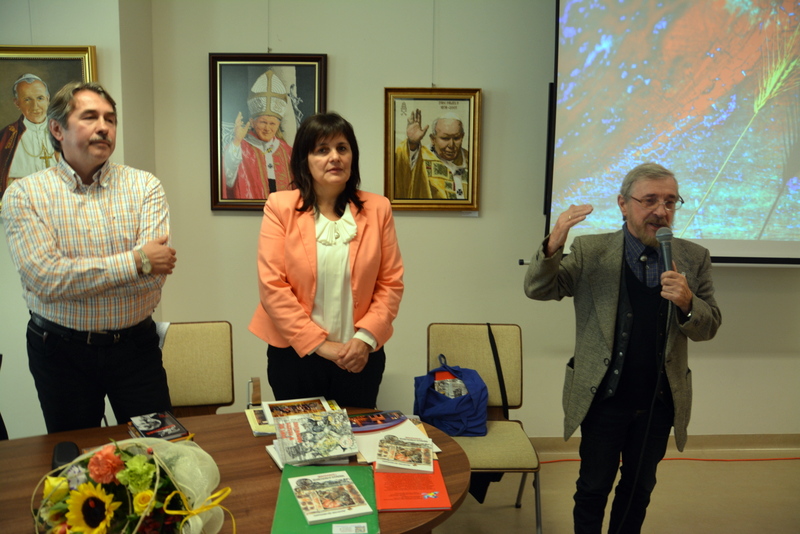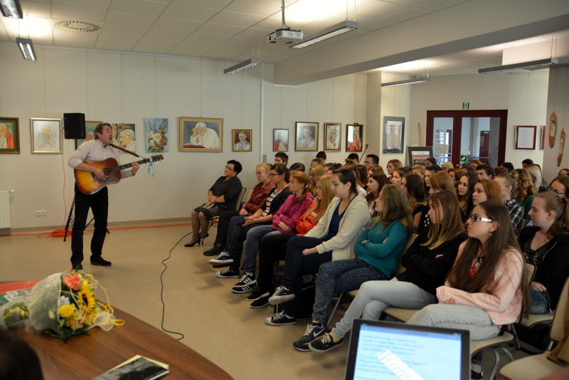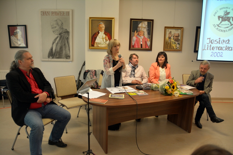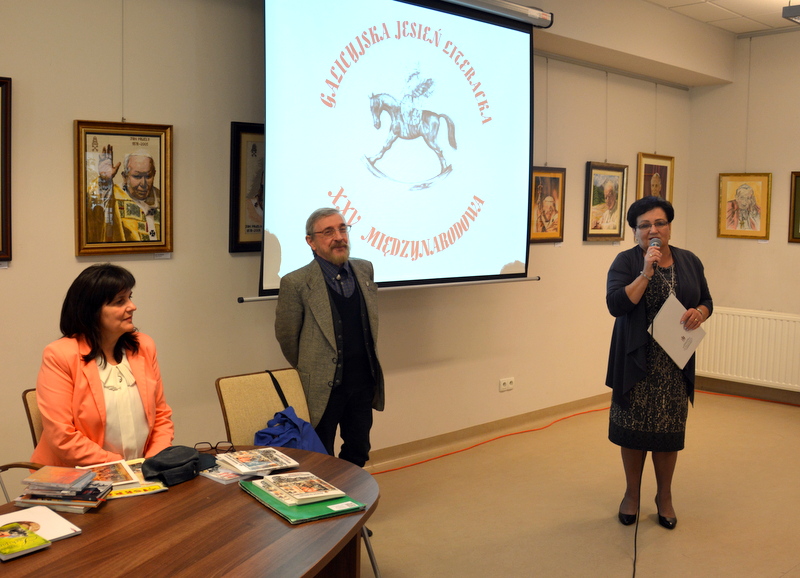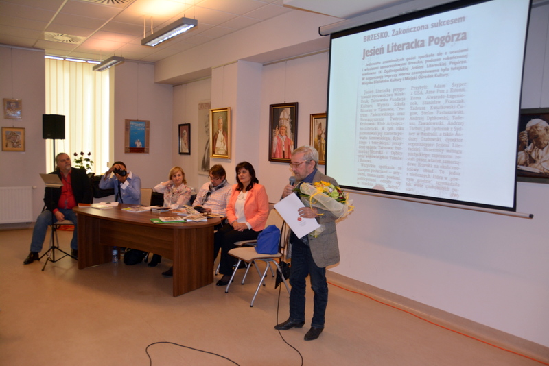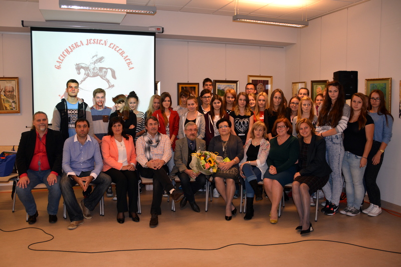 Międzynarodowa Galicyjska Jesień Literacka w tym roku świętowała srebrny jubileusz swojego istnienia. Uczestnicy MGJL gościli w Brzesku po raz dwudziesty. Z okazji tak pięknego jubileuszu na ręce Andrzeja Grabowskiego kwiaty i listy gratulacyjne przekazali burmistrz Grzegorz Wawryka i dyrektor PiMBP Maria Marek.Lekcję literacko-muzyczną dla młodzieży licealnej poprowadził inicjator tej imprezy Andrzej Grabowski. Towarzyszyli mu Krystyna Konecka z Białegostoku, Tetyana Hurey, Oleś Diak, Volodymyr Garmatiuk z Ukrainy, Władimir Stockman z Rosji. Poeci zaprezentowali swoje utwory, opowiadali o swoich inspiracjach, przywołując nazwiska znanych poetów np. Adama Mickiewicza, Halinę Poświatowską, Wiliama Szekspira. Dzielili się z publicznością swoimi pasjami, zainteresowaniami opowiadając o tym, jak realizują się w życiu codziennym.W trakcie spotkania poeci, bardowie wykonywali liryczne piosenki i ballady, a także czytali wiersze w swoim ojczystym języku.Publiczność miała okazję zobaczyć pokaz fotografii Volodymyra Garmatiuka, oraz grafik Artura Grabowskiego.