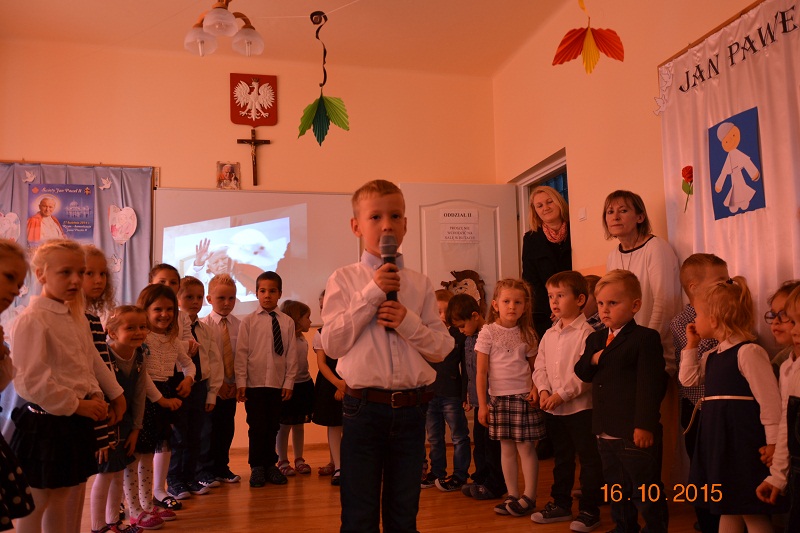W dniu 16 października w przedszkolu w Szczepanowie dzieci , nauczyciele oraz rodzice wspominali Jana Pawła II, patrona placówki.Dzieci przygotowały wspólnie z nauczycielami program słowno -muzyczny, który zaprezentowały dla zaproszonych gości . Uroczystość uświetnił pokaz multimedialny poświęcony Janowi Pawłowi II. Na wszystkich czekał słodki poczęstunek przygotowany przez rodziców. MB