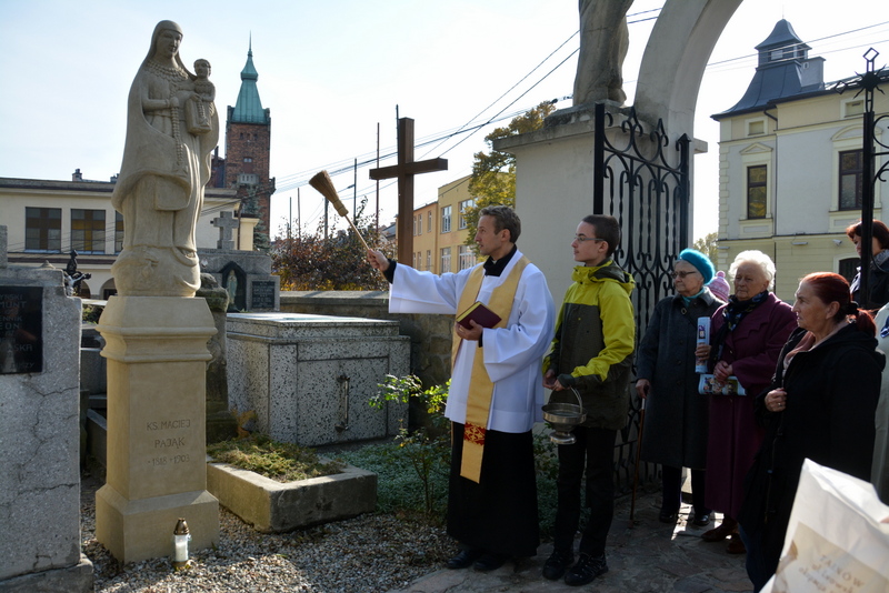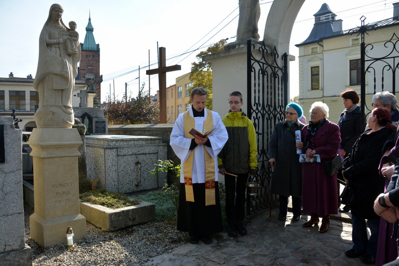 Stało się już tradycją, że w niedzielę poprzedzającą dzień Wszystkich Świętych poświęcane są odnowione w danym roku nagrobki na starym cmentarzu parafialnym w Brzesku. W niedzielę 25 października 2015 r. Ks. Marian Kostrzewa poświęcił 2 odnowione w 2015 roku nagrobki.1. Nagrobek ks. Macieja Pająka (1818 – 1903), który był rezydentem brzeskiej parafii w latach 1877 – 1903. Był opiekunem drewnianego jeszcze kościółka św. Ducha. Nagrobek, który był w olbrzymiej destrukcji odnowiony został ze środków Parafii św. Jakuba i Matki kościoła w roku 2015. Figura Matki Boskiej z Dzieciątkiem wykonana z piaskowca ciężkowickiego. Znajduje się tuż przy głównej bramie.2. Neogotycki kamienny nagrobek Józefa Rybickiego (1837- 1898) i jego córki Franciszki (1868 – 1884). Jeden z najciekawszych nagrobków wykonany z piaskowca i wapienia. W środkowej części w niszy znajduje się rzeźba Jezusa Nazareńskiego. Nagrobek został wykonany z końcem XIX w. w pracowni Wojciecha Samka w Bochni.Konserwacja została sfinansowana przez Komitet Ochrony i Troski o Cmentarz Parafialny w Brzesku ze środków zebranych na kweście w roku 2014. Przeprowadził ją Wojciech Siek - konserwator dzieł sztuki.Komitet Ochrony i Troski o Cmentarz Parafialny w Brzesku składa serdeczne podziękowanie za dotychczasowe środki i zachęca wszystkich o składanie datków w dniu Wszystkich Świętych, gdzie na obu cmentarzach w Brzesku będzie prowadzona kwesta.Cecylia Jabłońska