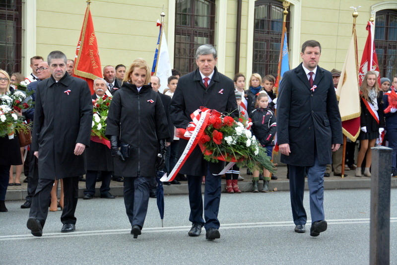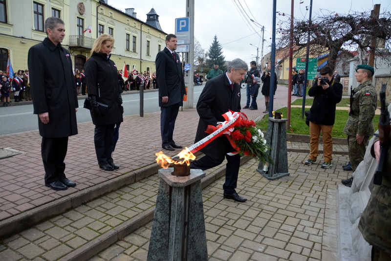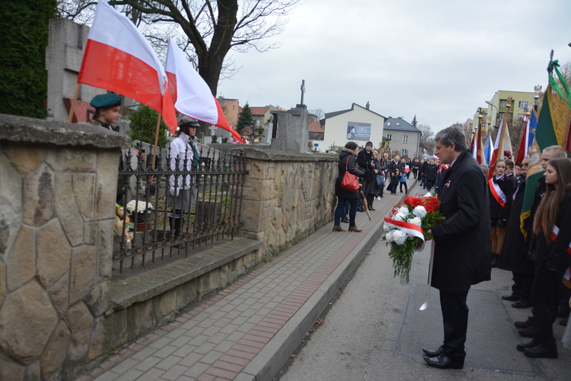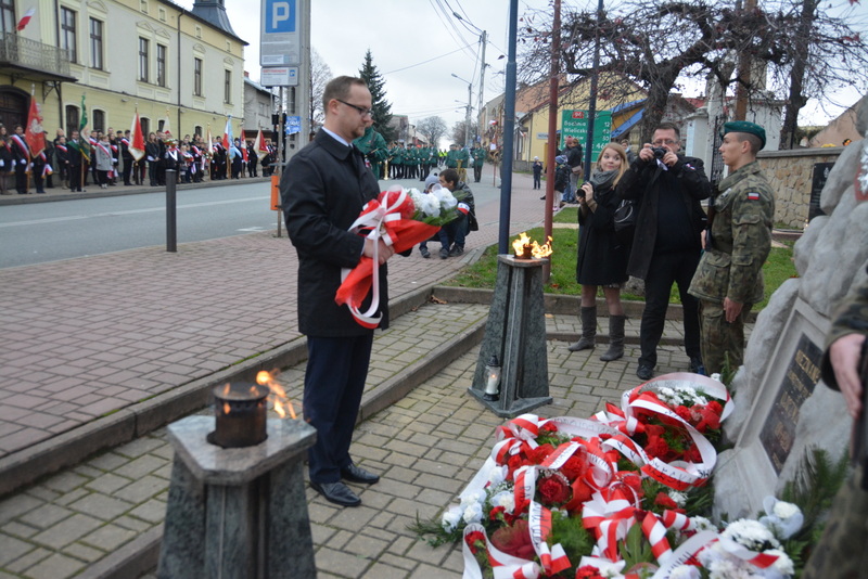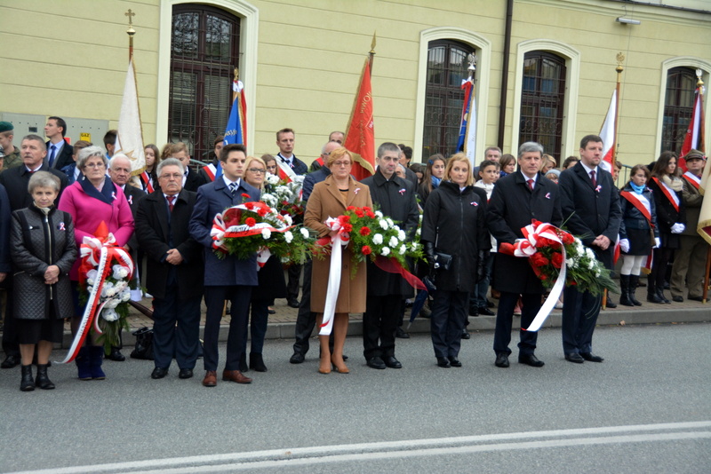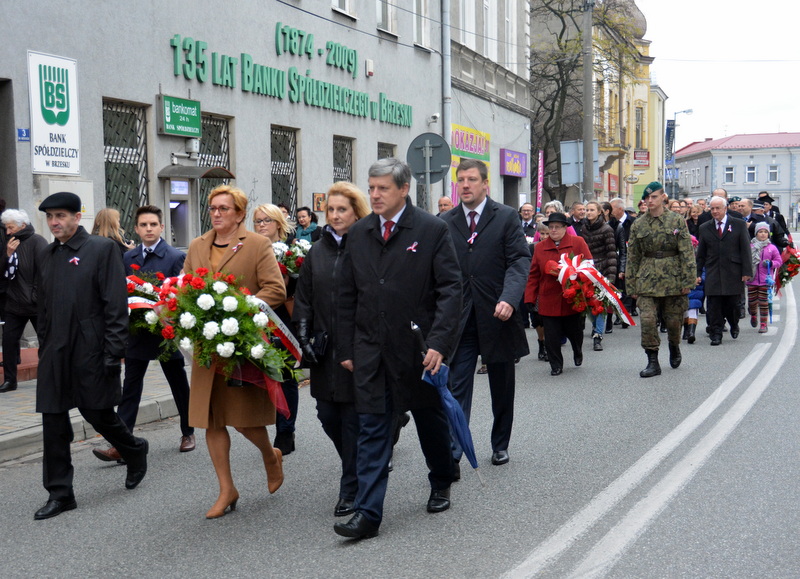 Wszyscy przeszli pod Grób Nieznanego Żołnierza, gdzie złożyli kwiaty. W imieniu mieszkańców gminy wiązankę złożyli burmistrz Grzegorz Wawryka, wiceburmistrz Jerzy Tyrkiel  i sekretarz gminy Stanisław Sułek. Kwiaty złożyła poseł na Sejm RP  pani Józefa Szczurek- Żelazko, a w imieniu europosła Edwarda Czesaka asystent Piotr Gładysz. Wiązanki złożyli również radni,  na czele z przewodniczącym Rady Miejskiej w Brzesku Krzysztofem Ojczykiem, przedstawiciele partii politycznych, stowarzyszeń, instytucji, zakładów pracy, strażacy OSP, komendanci policji i straży pożarnej, młodzież wszystkich szkół z terenu gminy, harcerze  oraz najmłodsi mieszkańcy czyli przedszkolaki z Publicznego Przedszkola nr 4 w Brzesku.