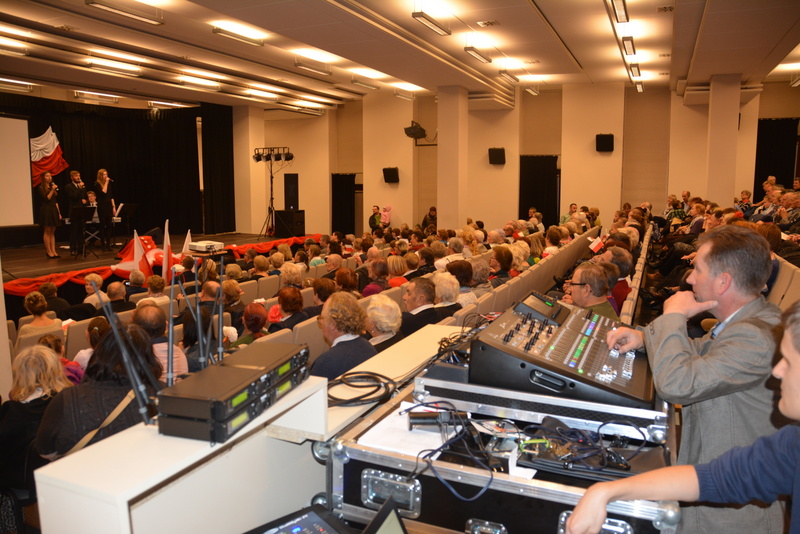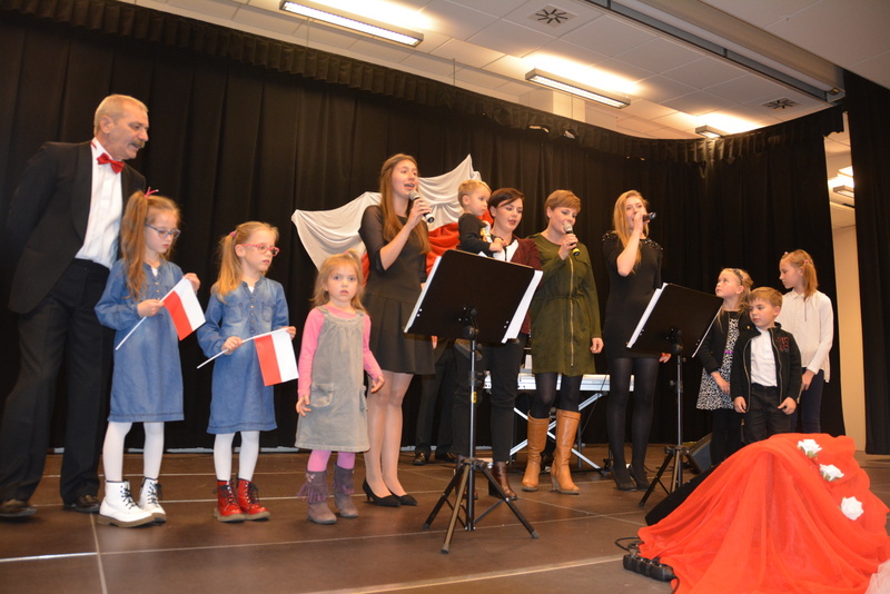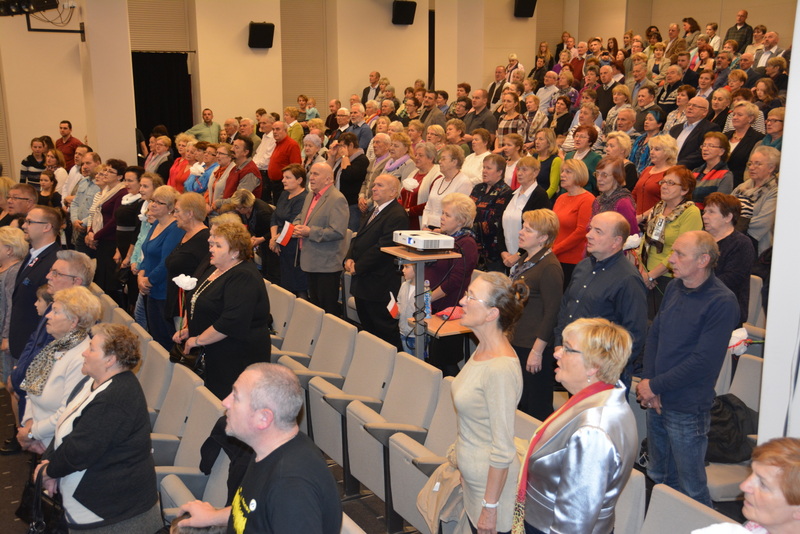 Później radosne i zgodne, jak zawsze w Brzesku świętowanie rocznicy odzyskania niepodległości  przeniosło się do RCK-B, gdzie po południu  w wypełnionej po brzegi sali widowiskowej  były chóralne śpiewy pieśni i piosenek patriotycznych. Każdy  z obecnych mógł również skosztować znakomitej grochówki  żołnierskiej.