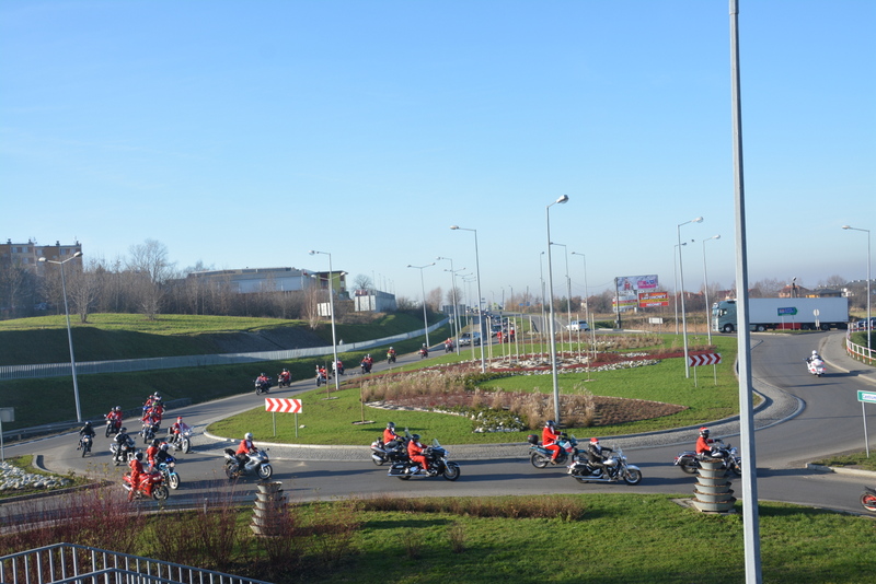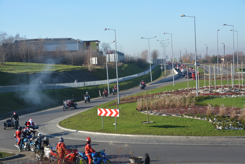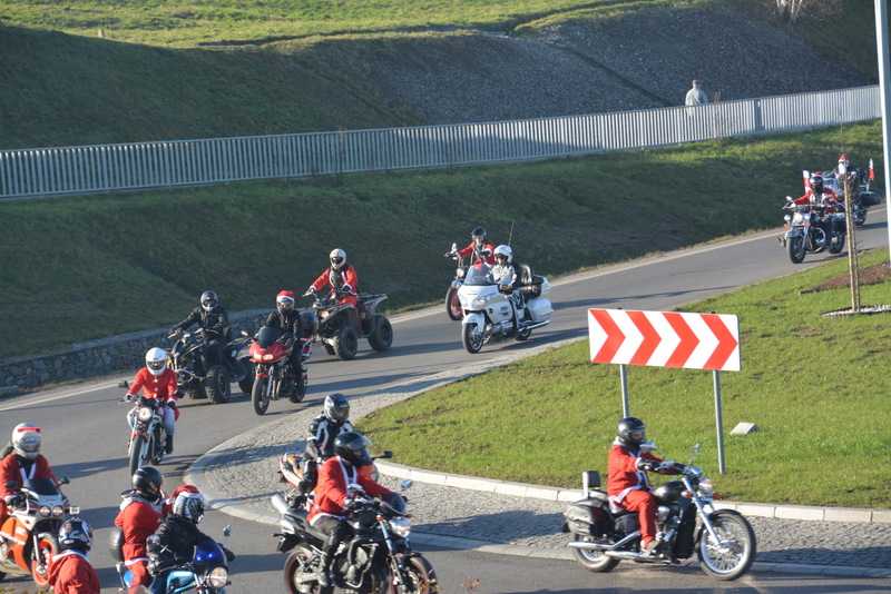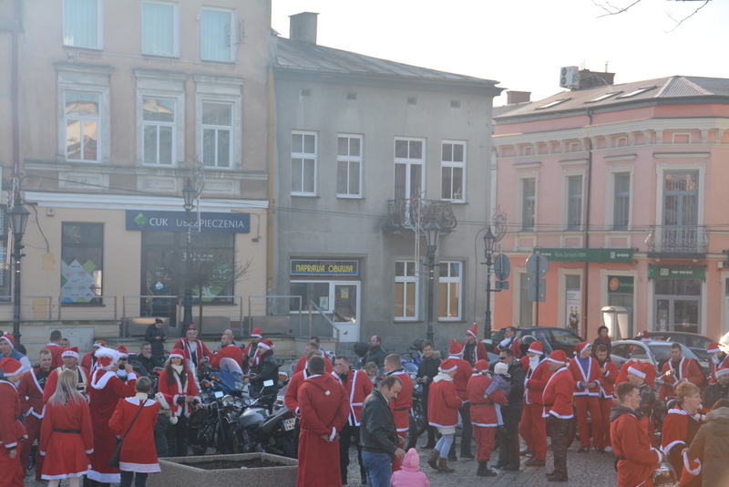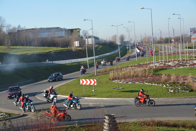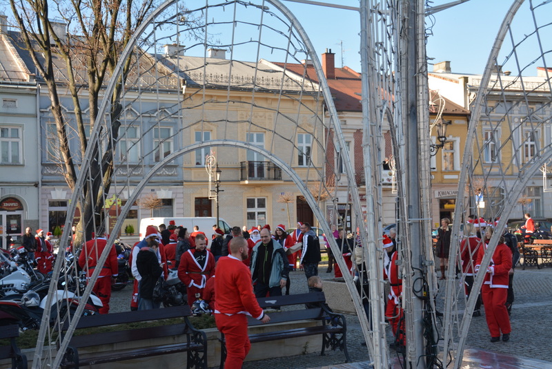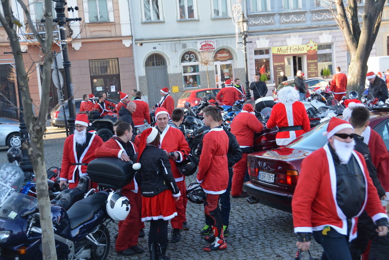 Następnie, w kolorowej paradzie MotoMikołaje pojechali na brzeski rynek , gdzie rozdawali słodycze dzieciom i dorosłym. Dla kierowców samochodów oprócz słodyczy mieli podarunek w postaci „rózgi”, która miała za zadanie przypomnieć o konieczności przestrzegania przepisów drogowych.