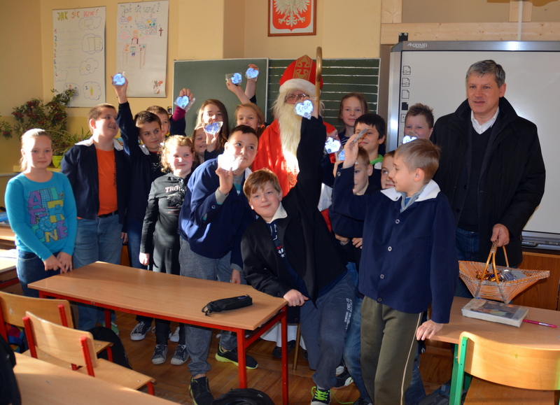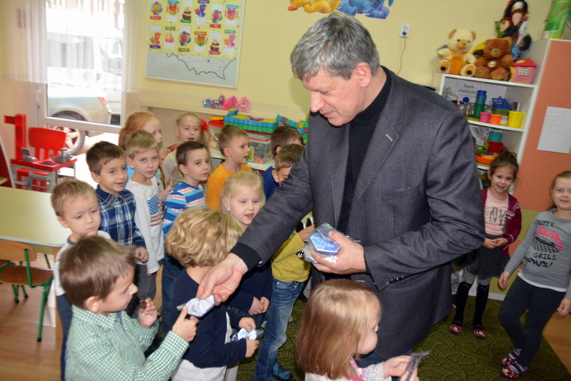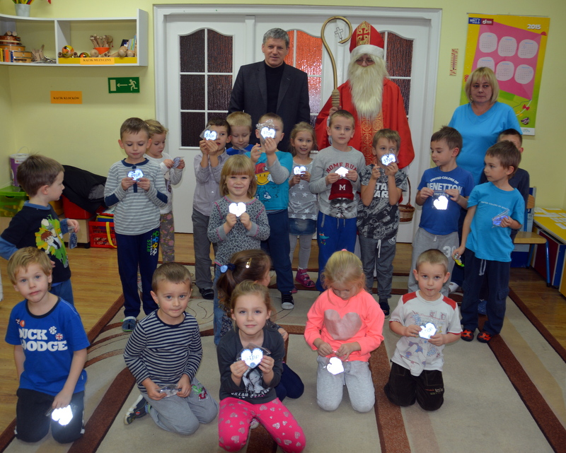 Szkoły podstawowe i przedszkola w Jasieniu, Okocimiu i Porębie Spytkowskiej, oraz kilka przedszkoli w Brzesku odwiedził w tym tygodniu Mikołaj wraz z burmistrzem Grzegorzem Wawryką. Okazją do spotkania z milusińskimi było przekazanie nie tylko słodyczy, ale też odblaskowych serduszek.. Burmistrz oraz Mikołaj mają w planie odwiedzenie wszystkich szkół i przedszkoli na terenie gminy.-Głównym powodem wizyt jest przekazanie dzieciom odblaskowych serduszek, a tym samym przypomnienie dzieciom i ich rodzicom o konieczności noszenia odblasków, co ważne jest szczególnie o tej porze roku. Dość szybko zapada zmrok, a noszenie elementów odblaskowych przez pieszych i to szczególnie najmłodszych zapewnia większe bezpieczeństwo, o którym nie możemy zapominać - mówi burmistrz Grzegorz Wawryka.Odblaskowe serduszka można przypiąć do kurtki albo do plecaka, dzięki temu każdy pieszy jest widoczny dla kierowców.- Bezpieczeństwo dzieci jest dla nas sprawą niezwykle ważną - dodaje burmistrz.