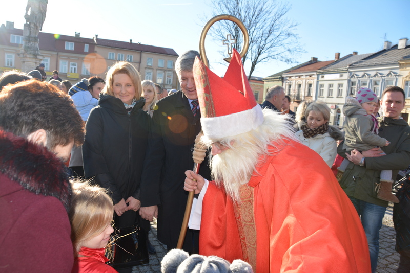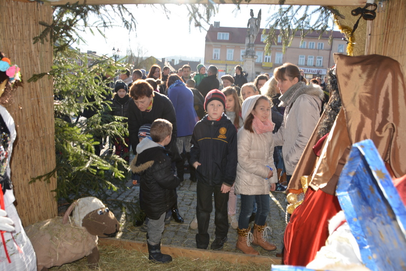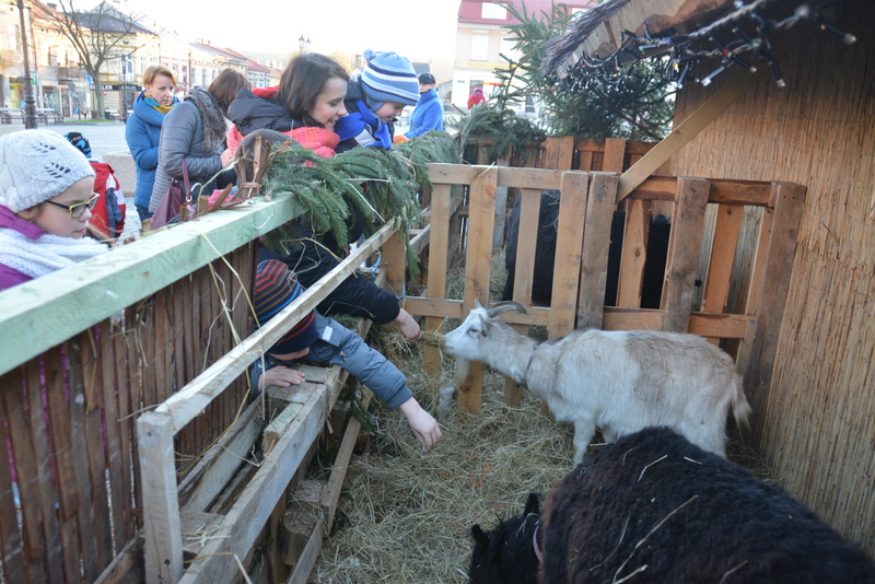 Piękna, słoneczna pogoda towarzyszyła tłumom mieszkańców gminy Brzesko oraz przyjezdnym, którzy w niedzielę odwiedzili na rynku „żywą szopkę”. Przypomnijmy, że od pięciu lat dzięki zaangażowaniu firm panów Andrzeja Grzelaka, Jerzego Rybickiego, Macieja Osady, oraz strażaków OSP Brzesko i pracowników biura promocji budowana jest szopka, która jest olbrzymią atrakcją, szczególnie dla najmłodszych.Pierwsze figury i dekoracje, a niektóre z nich zachwycają w szopce do dzisiaj, wykonali uczniowie gminnych szkół. Zapewne największym „magnesem” przyciągającym na brzeski rynek są zwierzęta: kuce, lama, osiołek i kózka, przywiezione z cyrku Pieniny, oraz kurki z mini-zoo w Przyborowie. Najmłodsi otrzymywali słodycze, a starsi życzenia od goszczącego wczoraj w naszym mieście świętego Mikołaja.Poświęcenia szopki oraz sianka na wigilijny stół dokonał ksiądz Jacek Walczyk.-Cieszę się, że z roku na rok coraz więcej mieszkańców przychodzi na rynek z całymi rodzinami, aby odwiedzić szopkę. Jestem przekonany, że to słońce, które towarzyszyło nam w niedzielę, będzie zwiastunem szczęścia i pomyślności w nowym 2016 roku - mówi burmistrz Brzeska Grzegorz Wawryka.