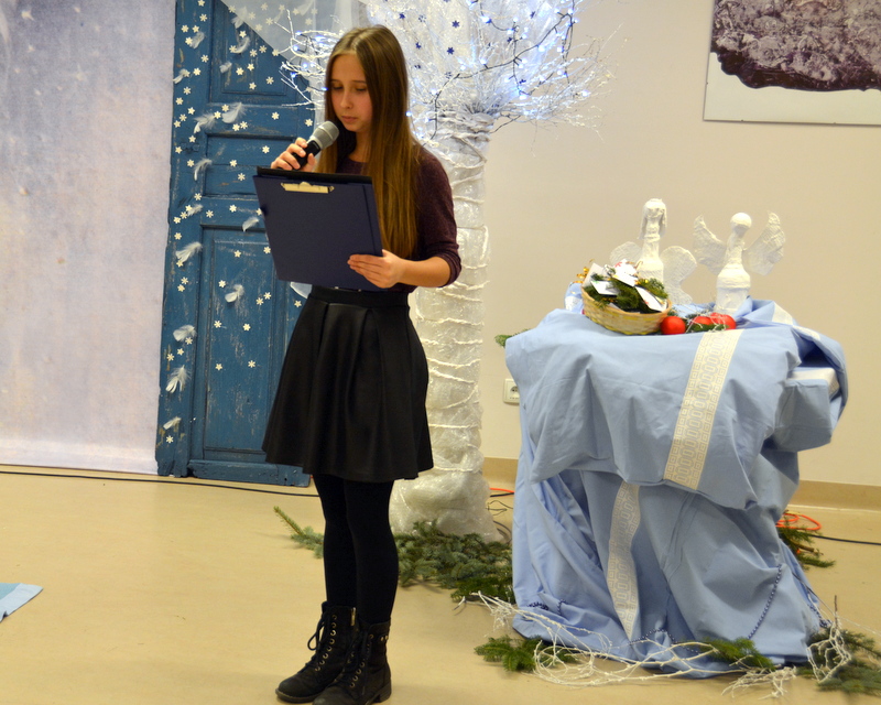 Tuż przed Świętami Bożego Narodzenia 18 grudnia miało miejsce spotkanie z poetką Agatą Podłęcką. Wypełnione pełną ciepła poezją wprowadziło wszystkich uczestników w świąteczny nastrój. Poetka dzieliła się swoimi refleksjami związanymi z tymi najpiękniejszymi i najbardziej rodzinnymi świętami przywołując wiele wspomnień oraz dostarczając wielu wzruszeń.Całość przeplatały pastorałki w wykonaniu młodych artystów z Grupy Teatralnej GT do słów poetki i muzyki Krzysztofa Szydłowskiego.Szczególnego świątecznego klimatu dopełniła dekoracja autorstwa Anny Serwin. Wszyscy uczestnicy spotkania rozchodząc się do domów zabrali ze sobą nie tylko wyjątkową atmosferę ale także gałązkę jodły ze świątecznymi życzeniami.